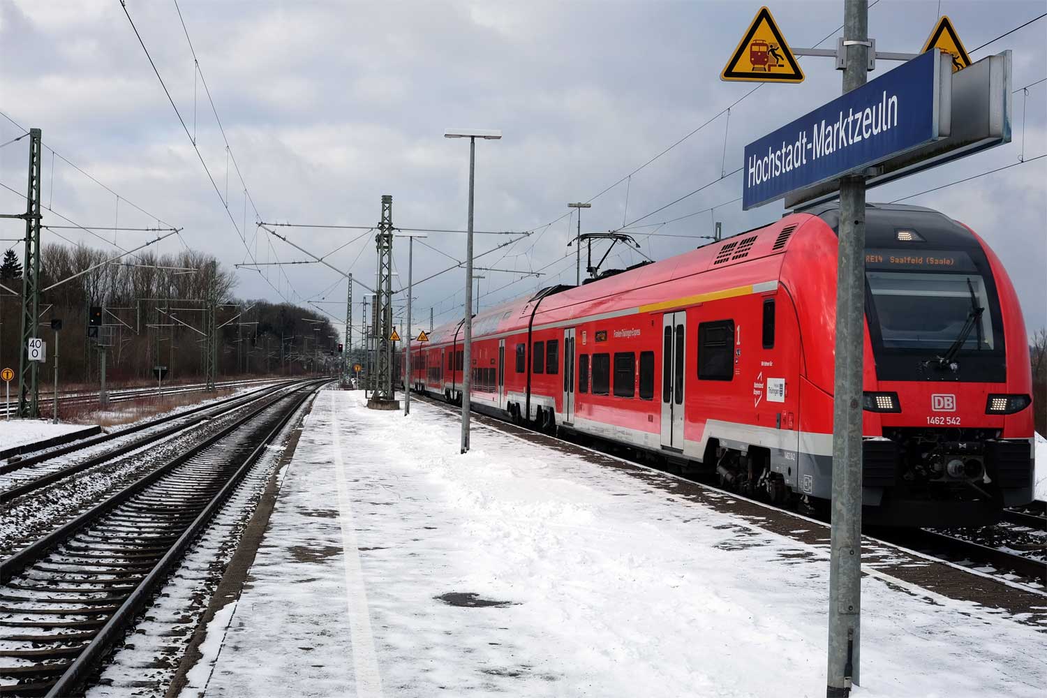 | Hochstadt-Marktzeuln | 40,16 | km 0,0 der Strecke km 0,0 der Strecke Hochstadt-Marktzeuln 0,0 - Grenze Bayern/Thüringen 52,940 = 166,666 - [Probstzella 164,98 - Saalfeld (Saale) 140,01 - Gera Hbf 72,93 - Zeitz 44,61 - Leipzig-Leutzsch 7,42 - (Leipzig Hbf -0,31)] (5010/6383/6367) |