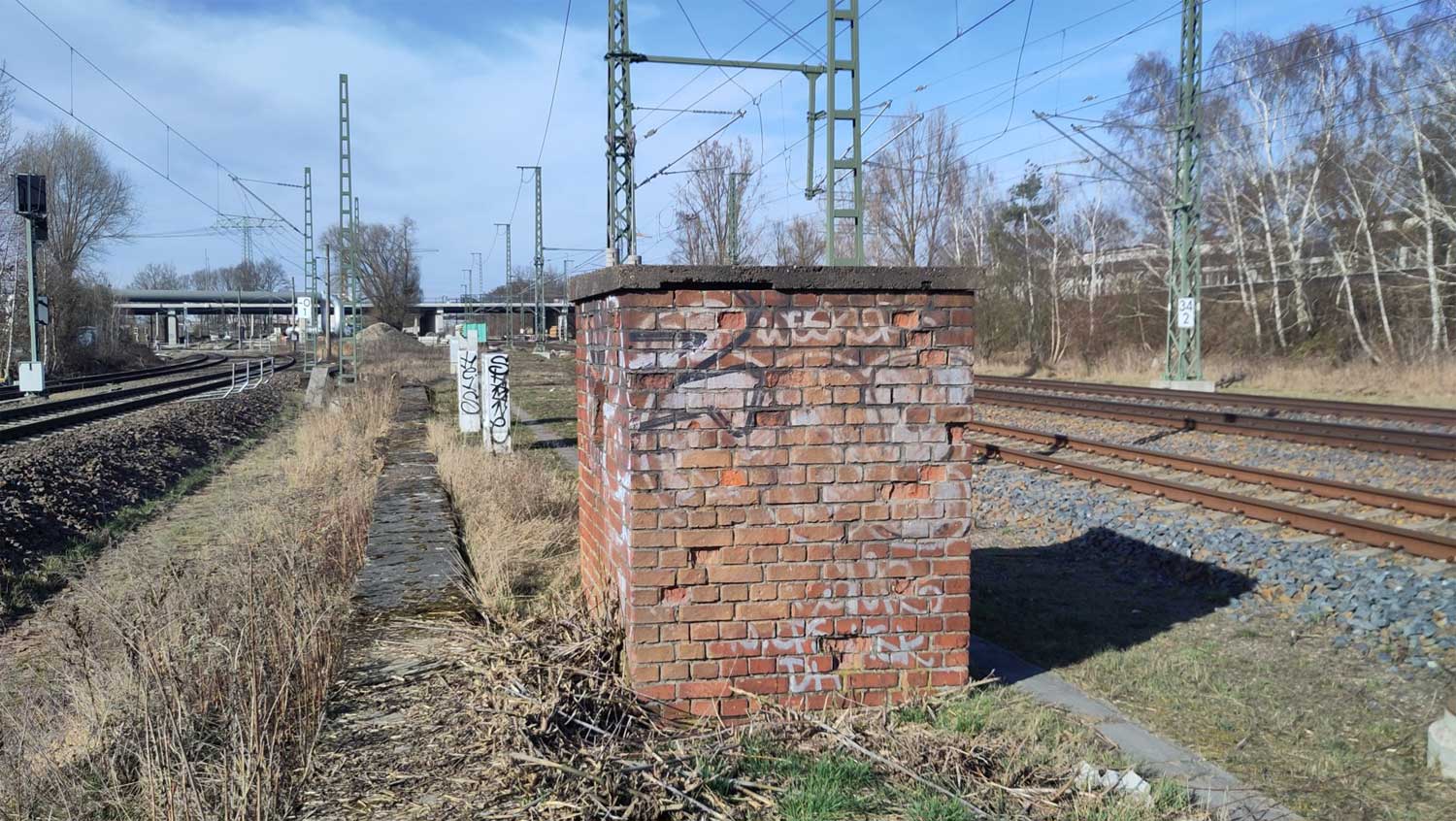 km 34,4 (BAR-6080) in Springpfuhl/Biesdorfer Kreuz Nord - Blick in Richtung der Kilometrierung