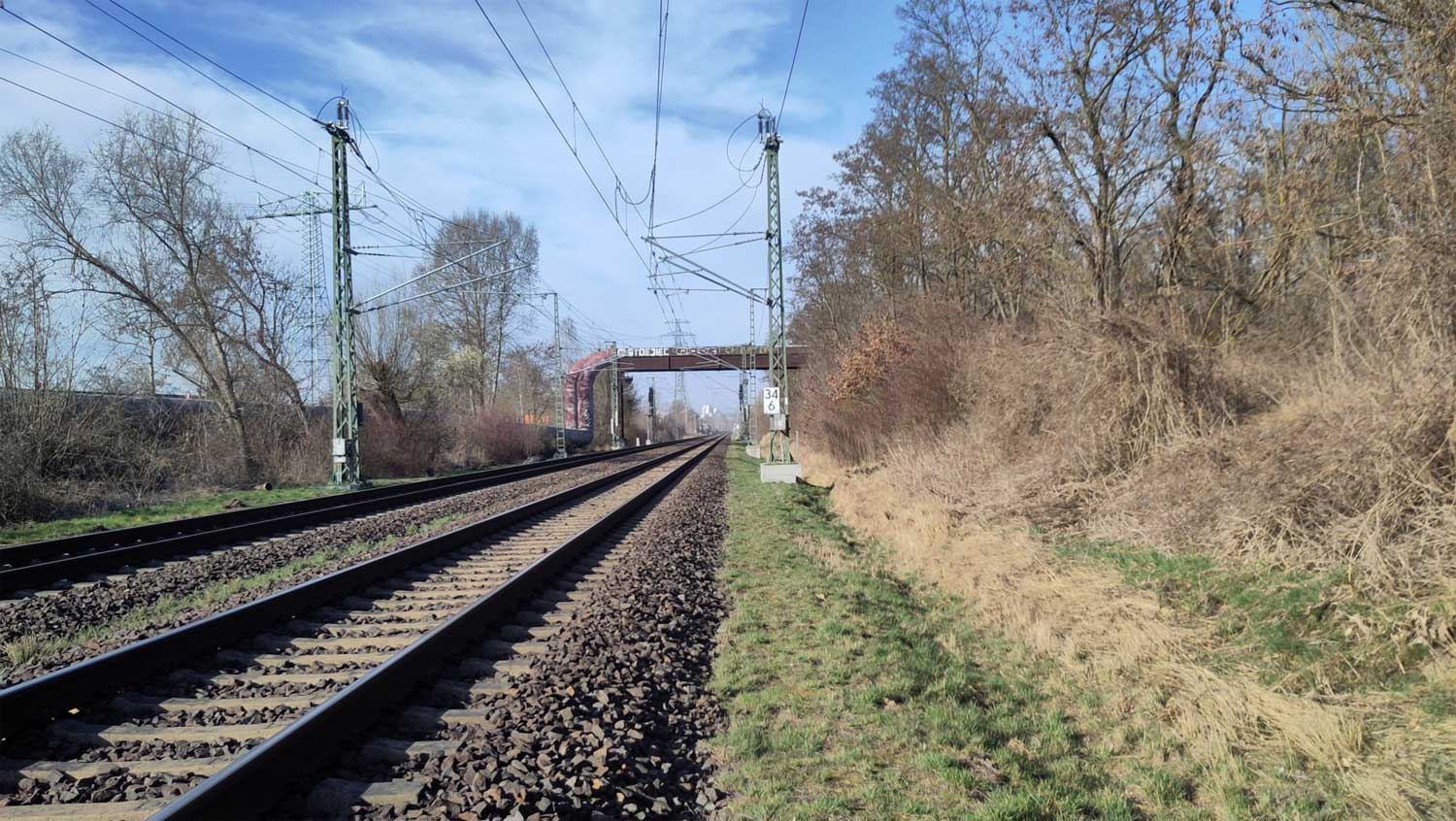bei km 34,3 (BAR-6080) in Springpfuhl/Biesdorfer Kreuz Nord - Blick in Richtung der Kilometrierung