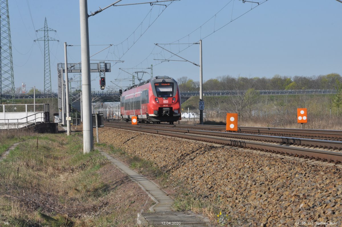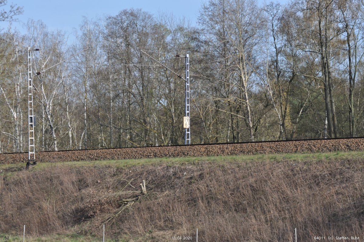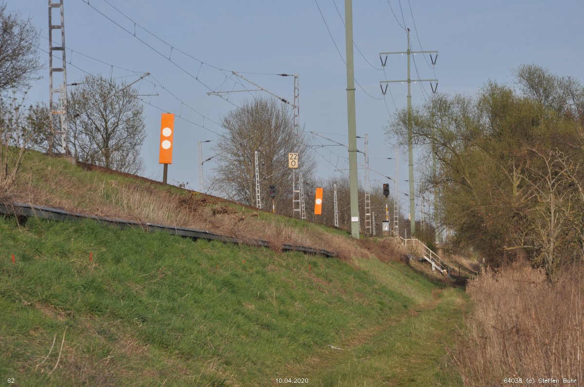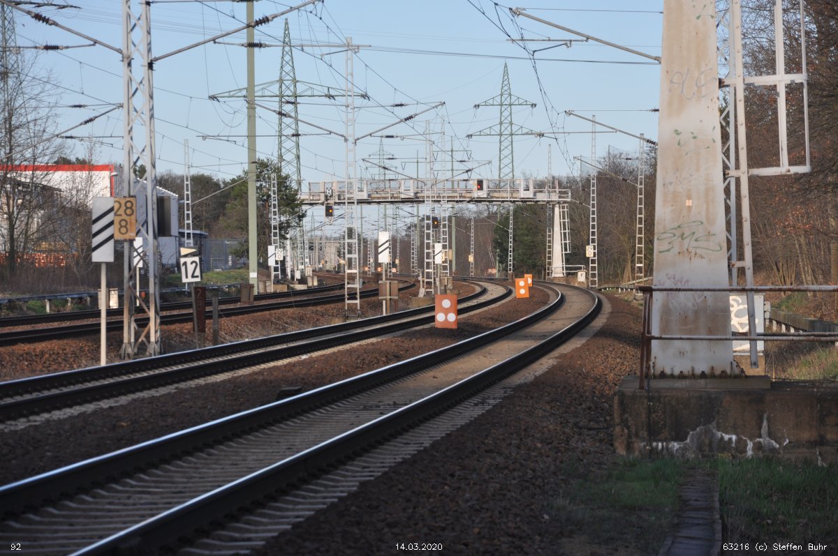 | Abzw. | Verbindungskurve nach Birkenwerder [Strecke Berlin Nordbahnhof (alt) 0,0 - Neustrelitz 98,53 - Neubrandenburg 133,73 - Stralsund 222,64 (kommend)/223,60 (gehend) - Saßnitz 272,72 - Saßnitz Hafen 274,46] | |