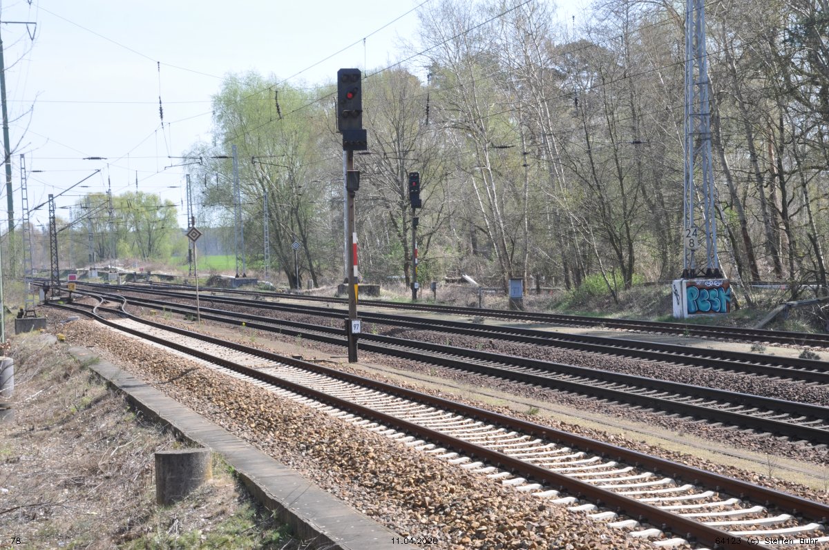 | Elstal/Abzw. Awe | 42,17 | km 77,417 der Strecke Jüterbog 0,0 - Beelitz Stadt 40,01 - Wildpark 58,78 - Wustermark 81,10 - Nauen 90,06 |