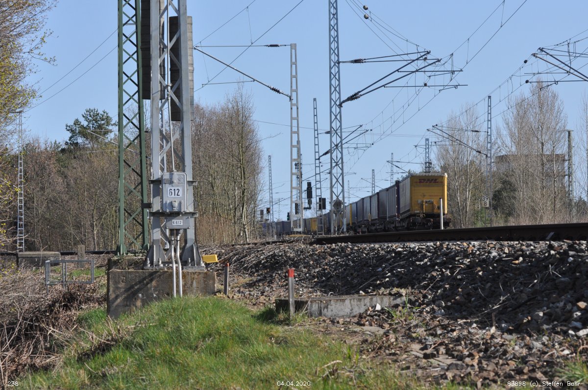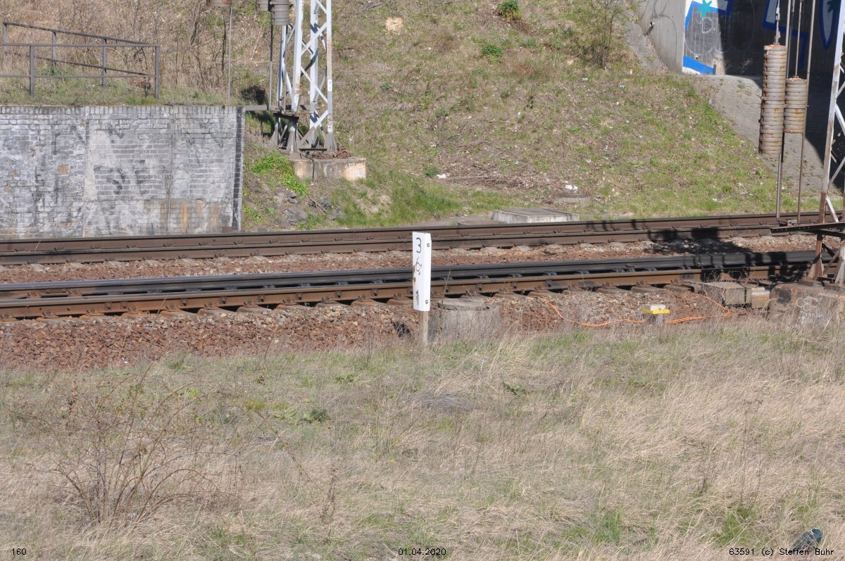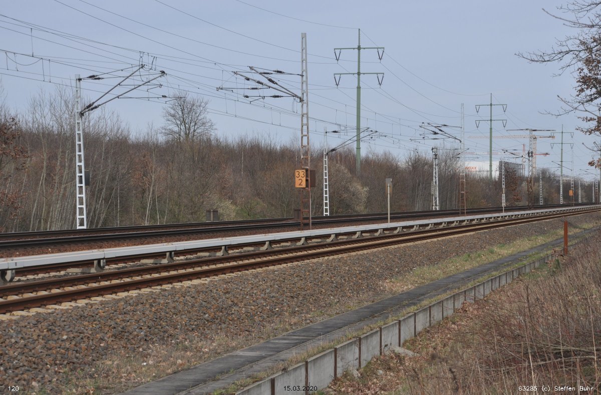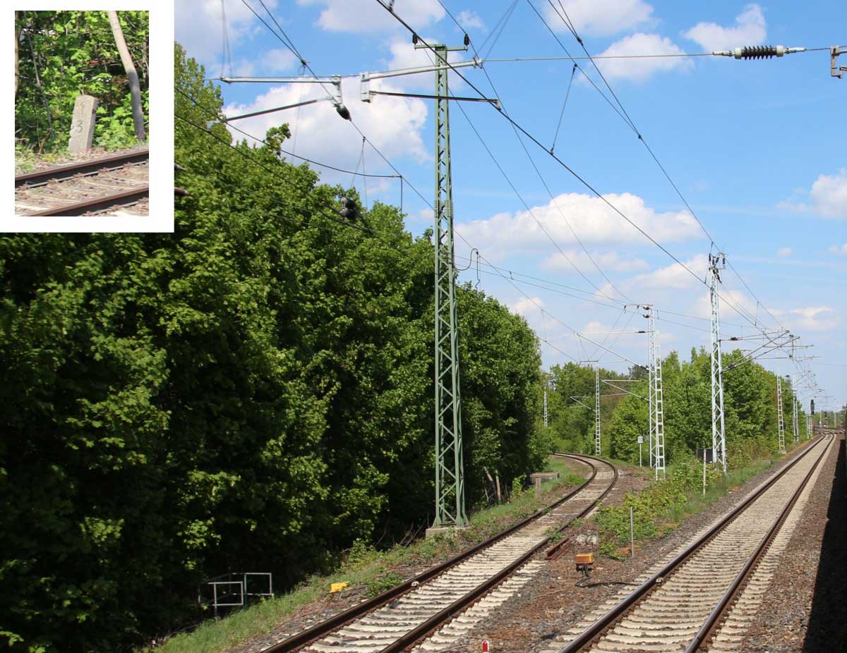 Links noch zu sehen km 1,3 der Strecke Abzw Grünauer Kreuz West - Abzw Grünauer Kreuz Süd (6145 - Richtungsgleis)