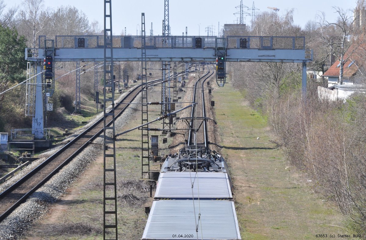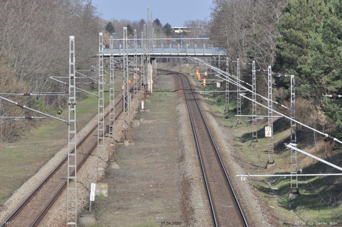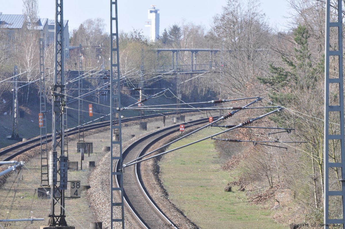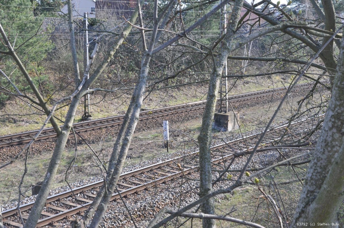 Links noch zu sehen km 0,4 der Strecke Abzw Grünauer Kreuz West - Abzw Grünauer Kreuz Süd (6145 - Gegenrichtungsgleis)
