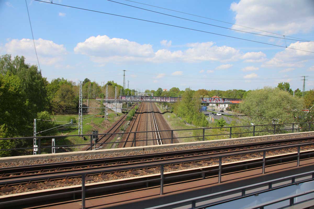 Unten die Görlitzer Bahn etwa bei km 12,1