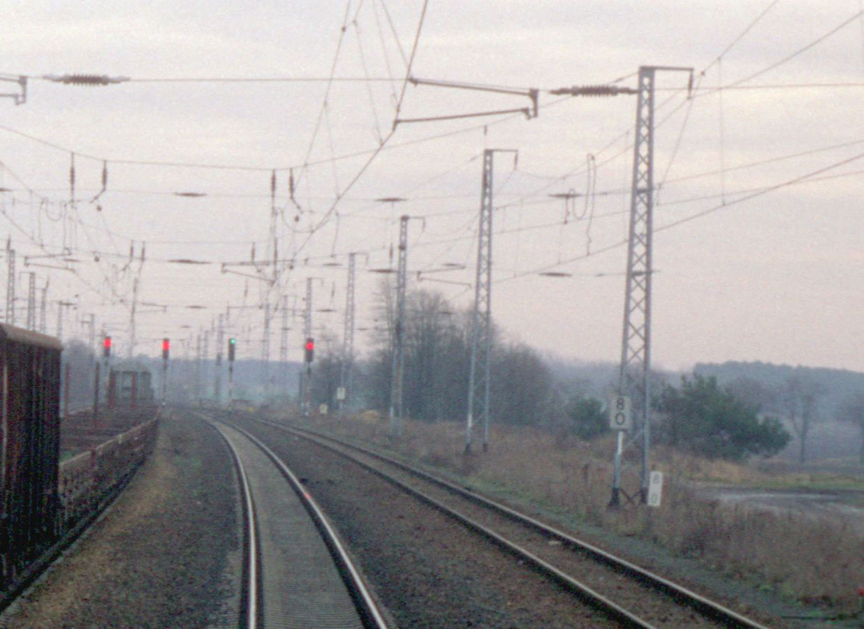 | Verbindungskurve nach Wustermark = Strecke Jüterbog 0,0 - Beelitz Stadt 40,01 - Wildpark 58,78 - Wustermark 81,10 - Nauen 90,06 | ||