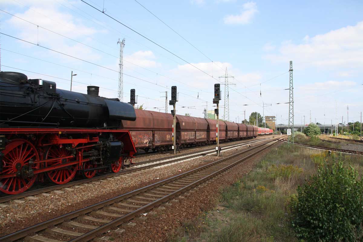 km 38,3 zwischen Zentralflughafen Berlin-Schönefeld und Grünauer Kreuz - 03 2067 (mit Altbaukessel) mit 3500 (Eisenach -) Bitterfeld (?) - Berlin-Schöneweide