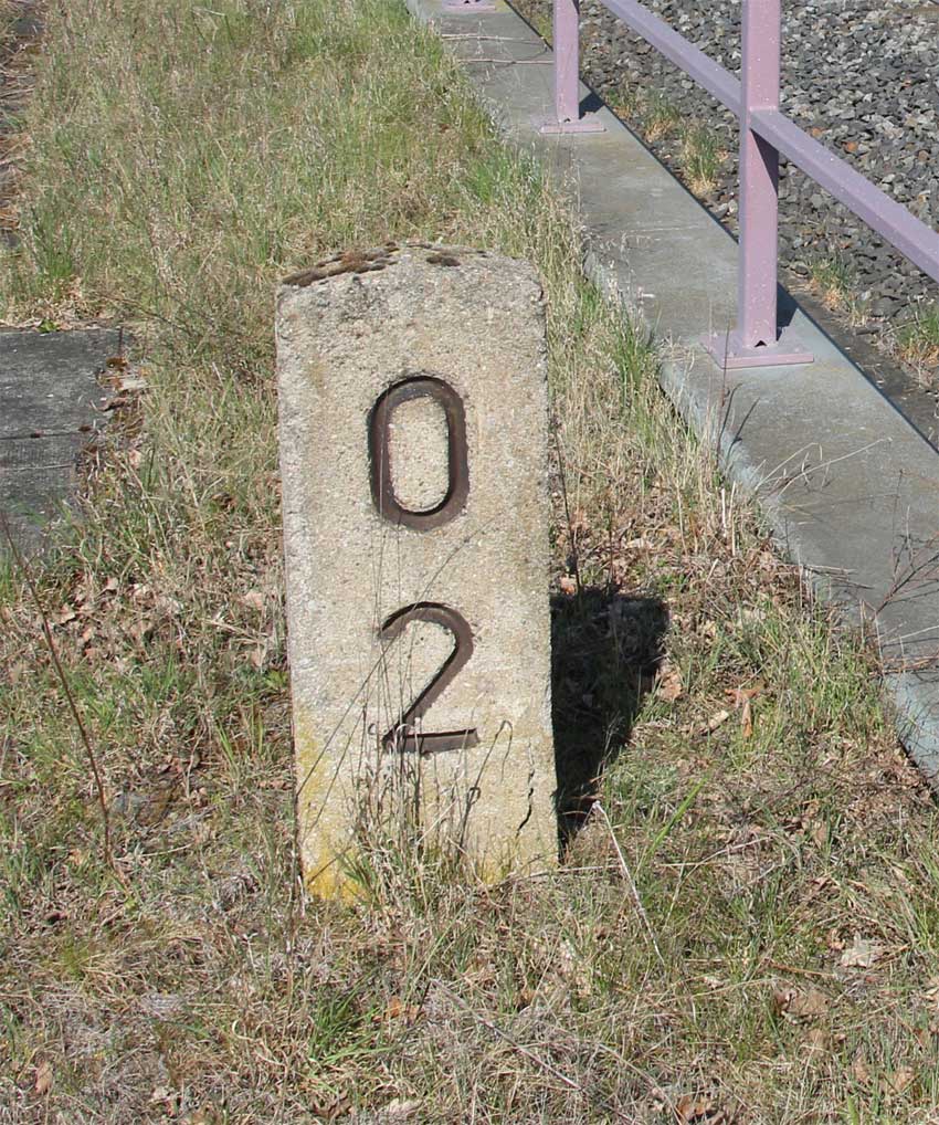 km 0,7 (Stein) und km 0,8 (Tafel) zwischen