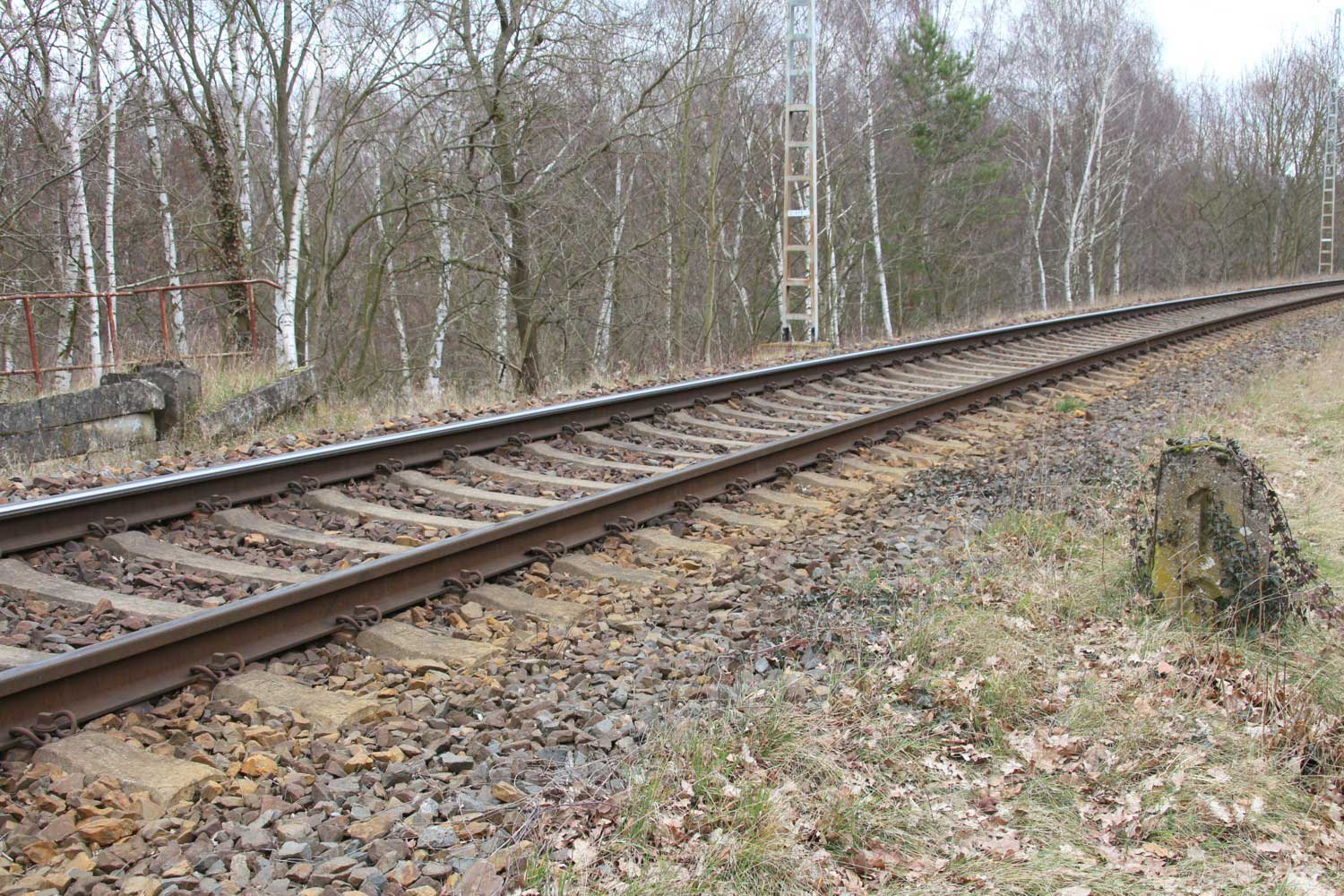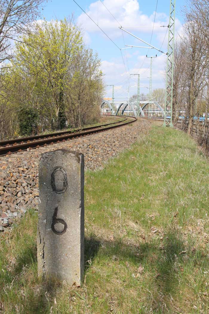 (Stein) des Gegenrichtungsgleises (lange Kurve) der Strecke Abzw Grünauer Kreuz