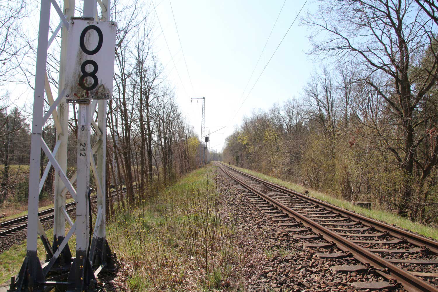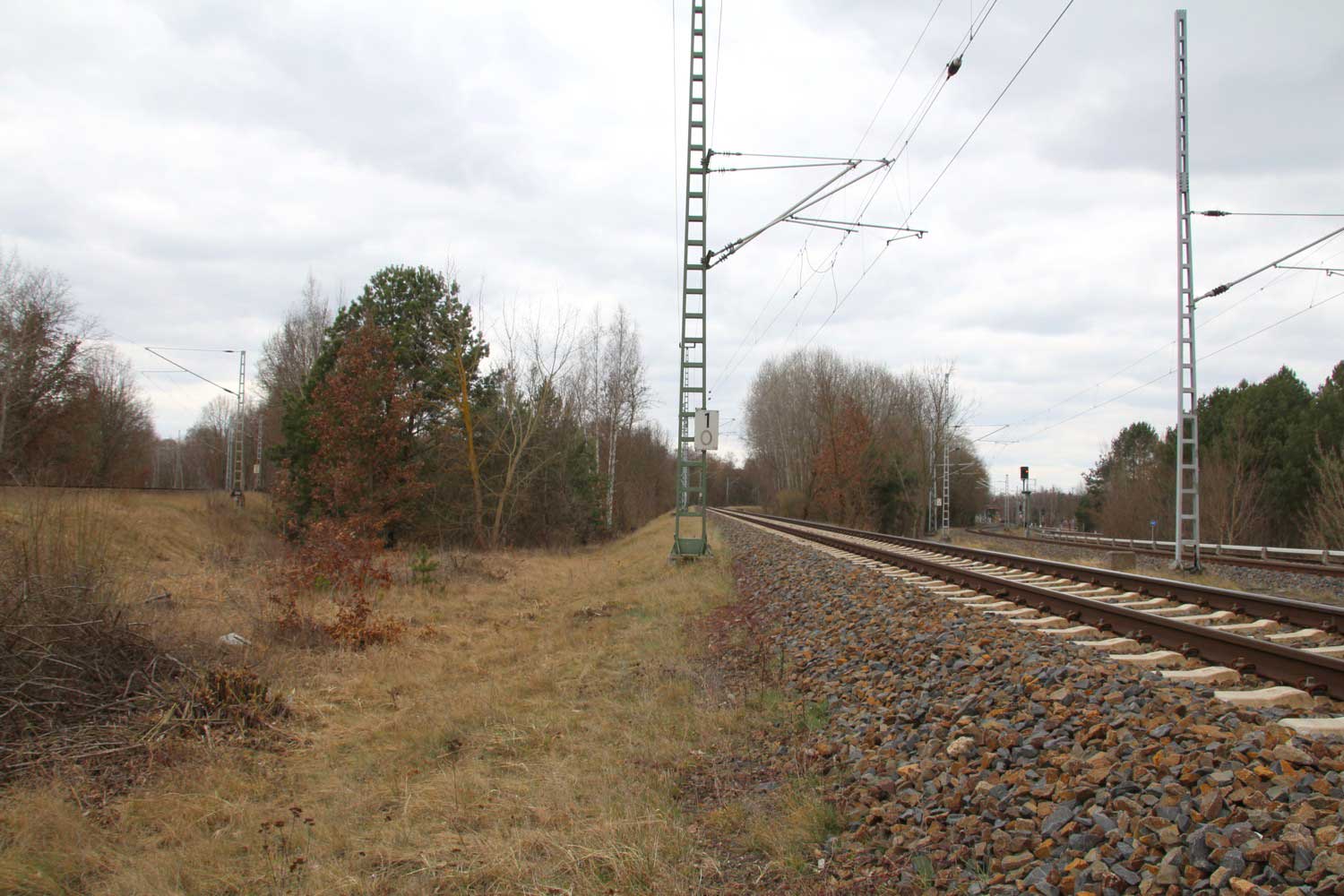 km 1,2 (Stein und Tafel) zwischen Berlin-Grünau und Abzw Grünauer Kreuz Nord - Blick