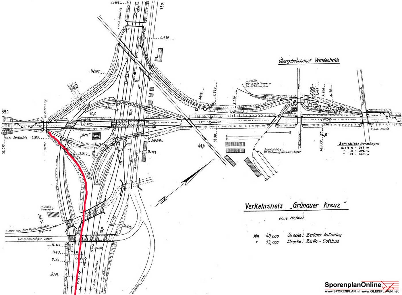 km 0,2 zwischen Abzw Grünauer Kreuz West und Abzw Grünauer Kreuz Süd km 11,4 gehört zur Görlitzer Bahn (6142) km 0,9 (Stein und Tafel) gehören zur Strecke