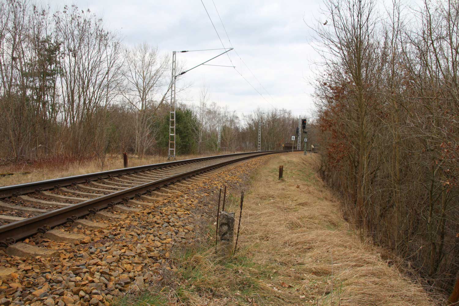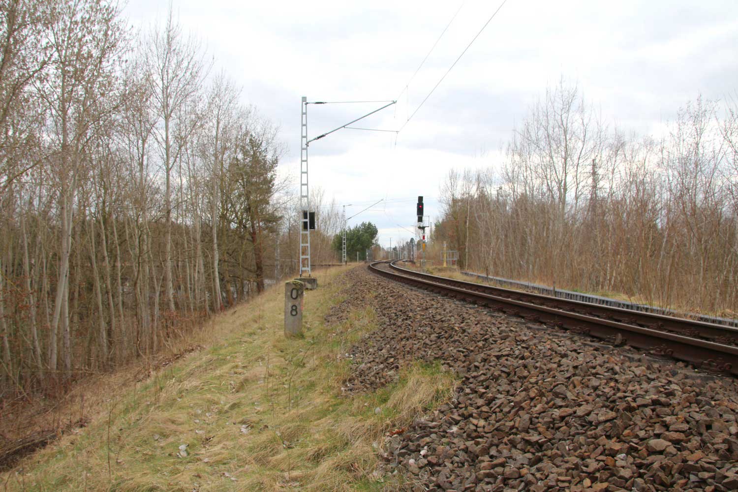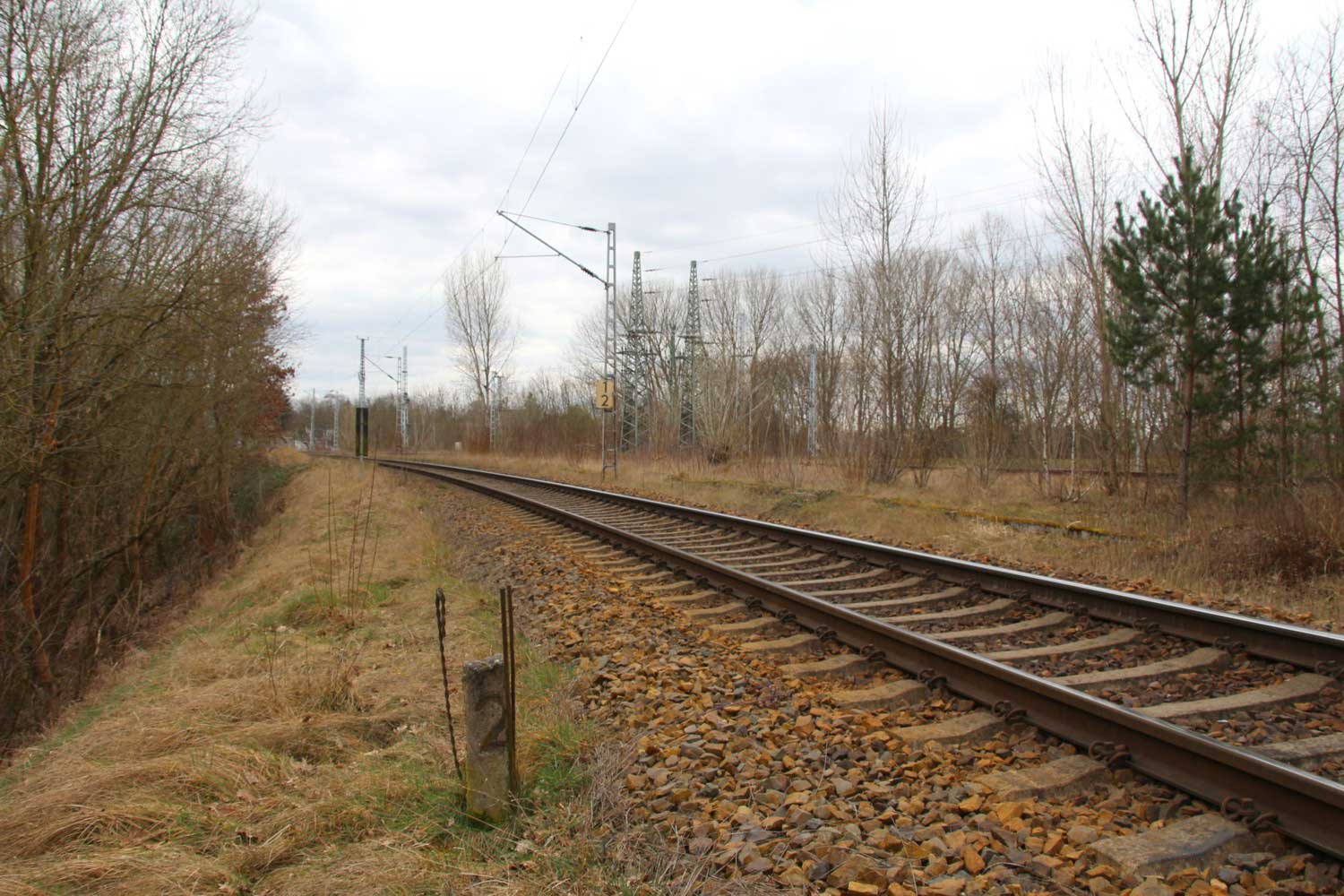 km 11,4 Rechts die beiden Gleise der Görlitzer Bahn (6142) mit km