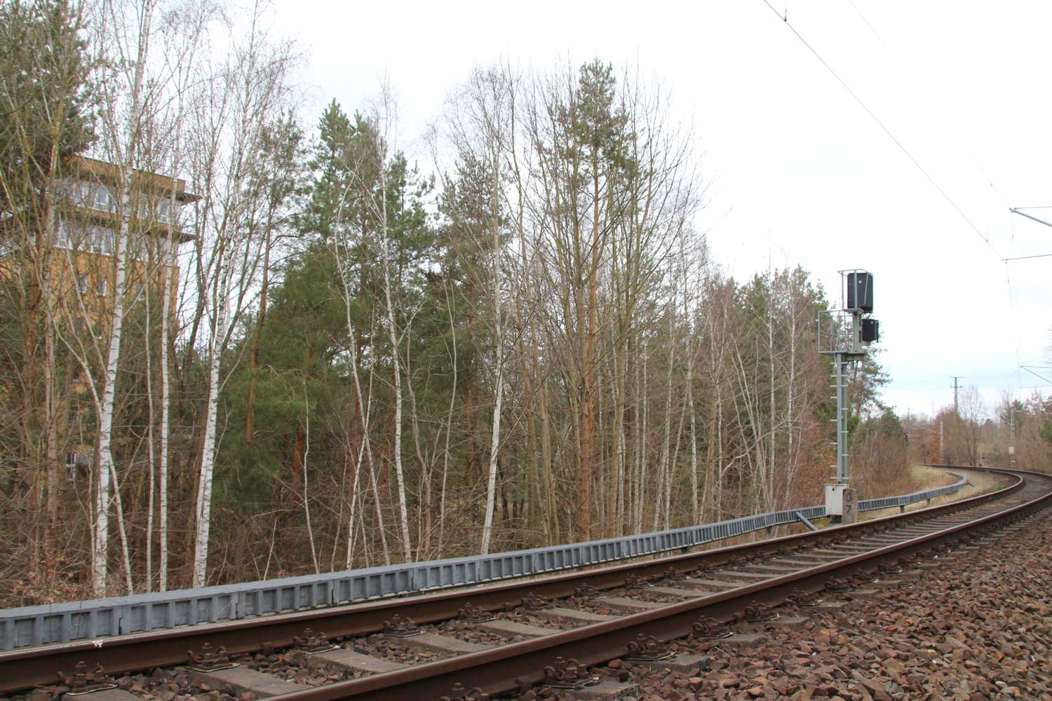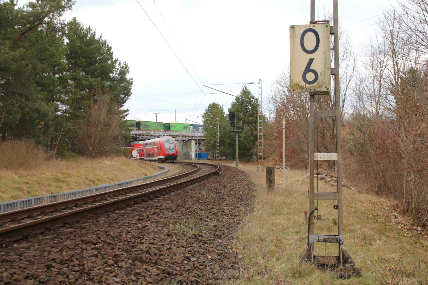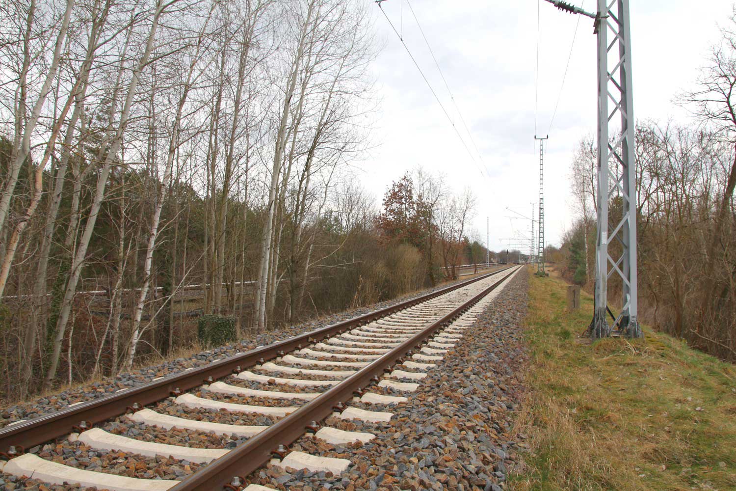 km 11,4 Rechts die beiden Gleise der Görlitzer Bahn (6142) mit km