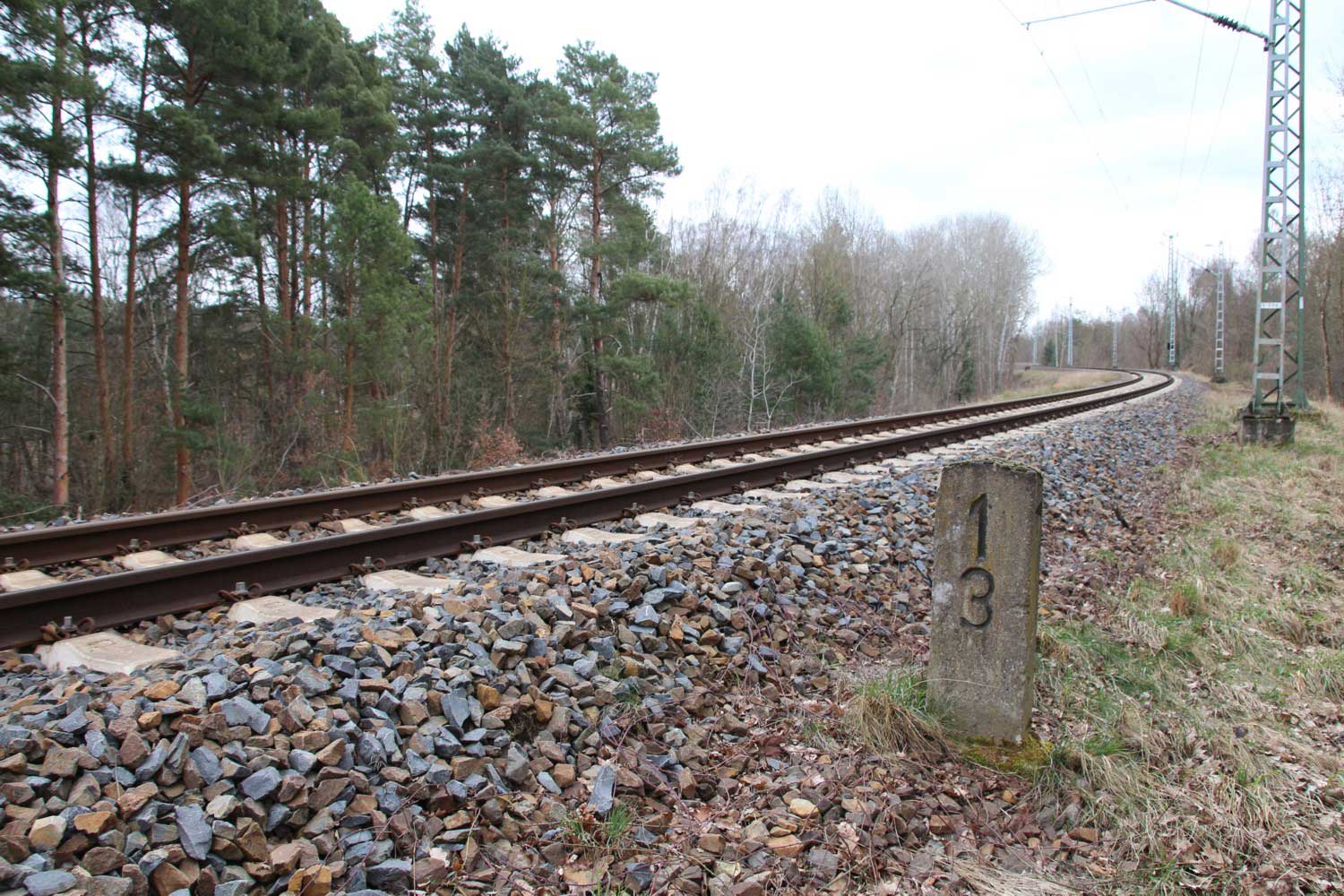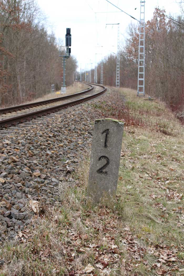 km 12,6 (Stein und Tafel) gehören zum Richtungsgleis der Görlitzer Bahn (6142)