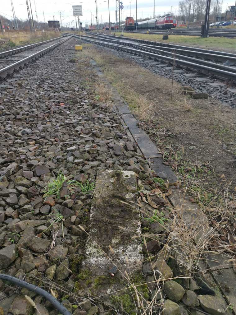 km 1,7 (liegender Stein) in Wustermark Rbf km 2,2 gehört zur Strecke