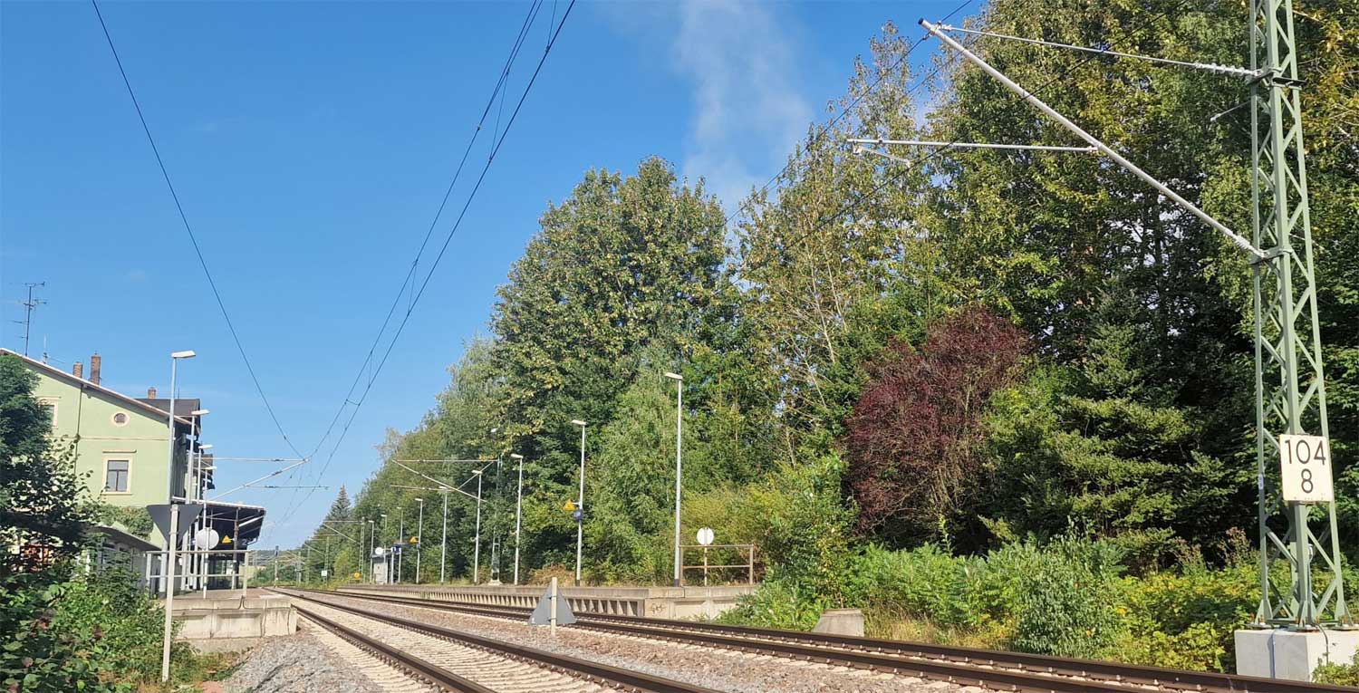 | km 75,59 der Strecke Leipzig Bayerischer Bf 0,12 - Altenburg Hbf 38,63 - Werdau 73,81 - Reichenbach (Vogtl) 90,96 - Plauen ob. Bf 116,11 - Hof (Saale) 164,8 (LH) | ||