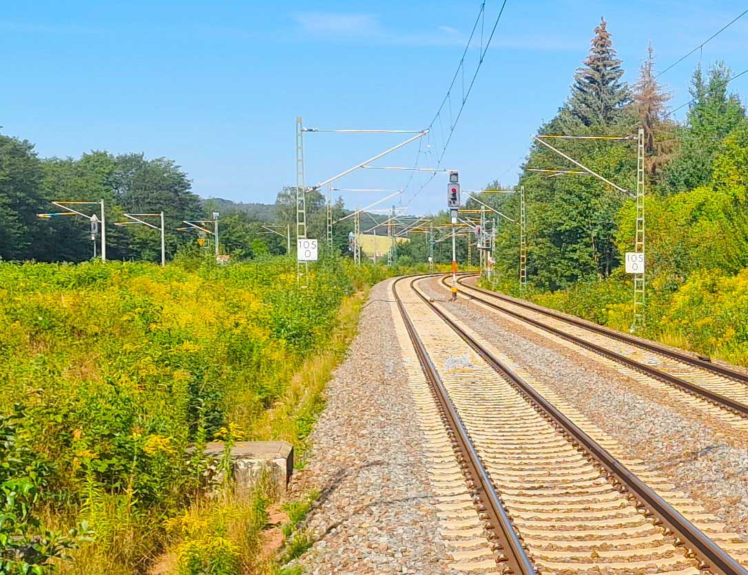 km 135,0 in Steinpleis - Blick Richtung Werdau Bogendreieck