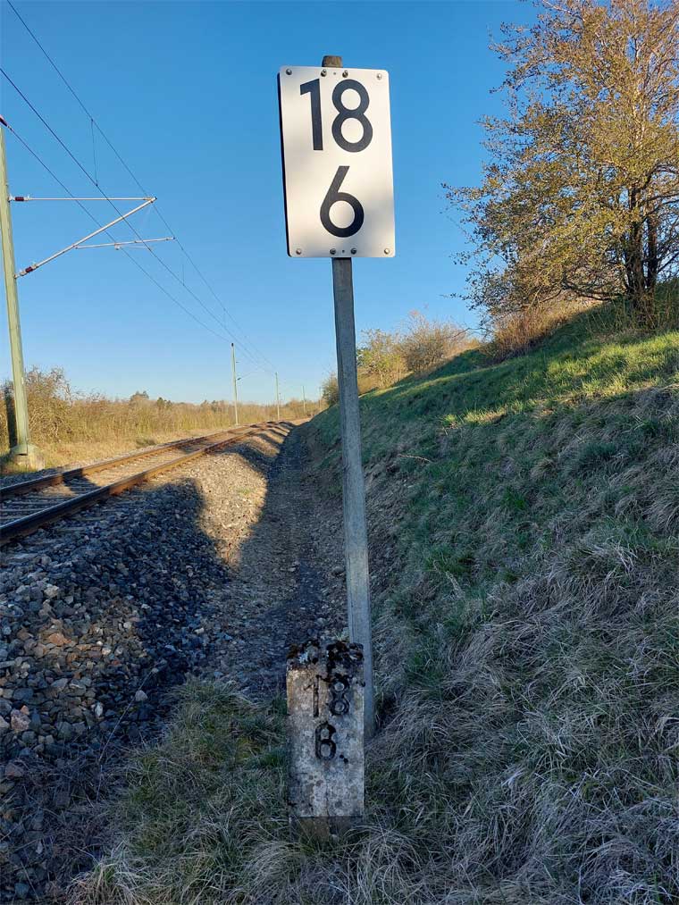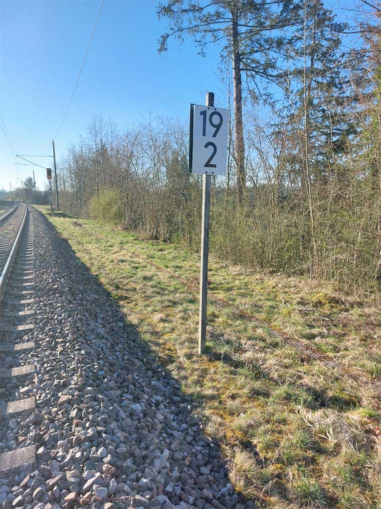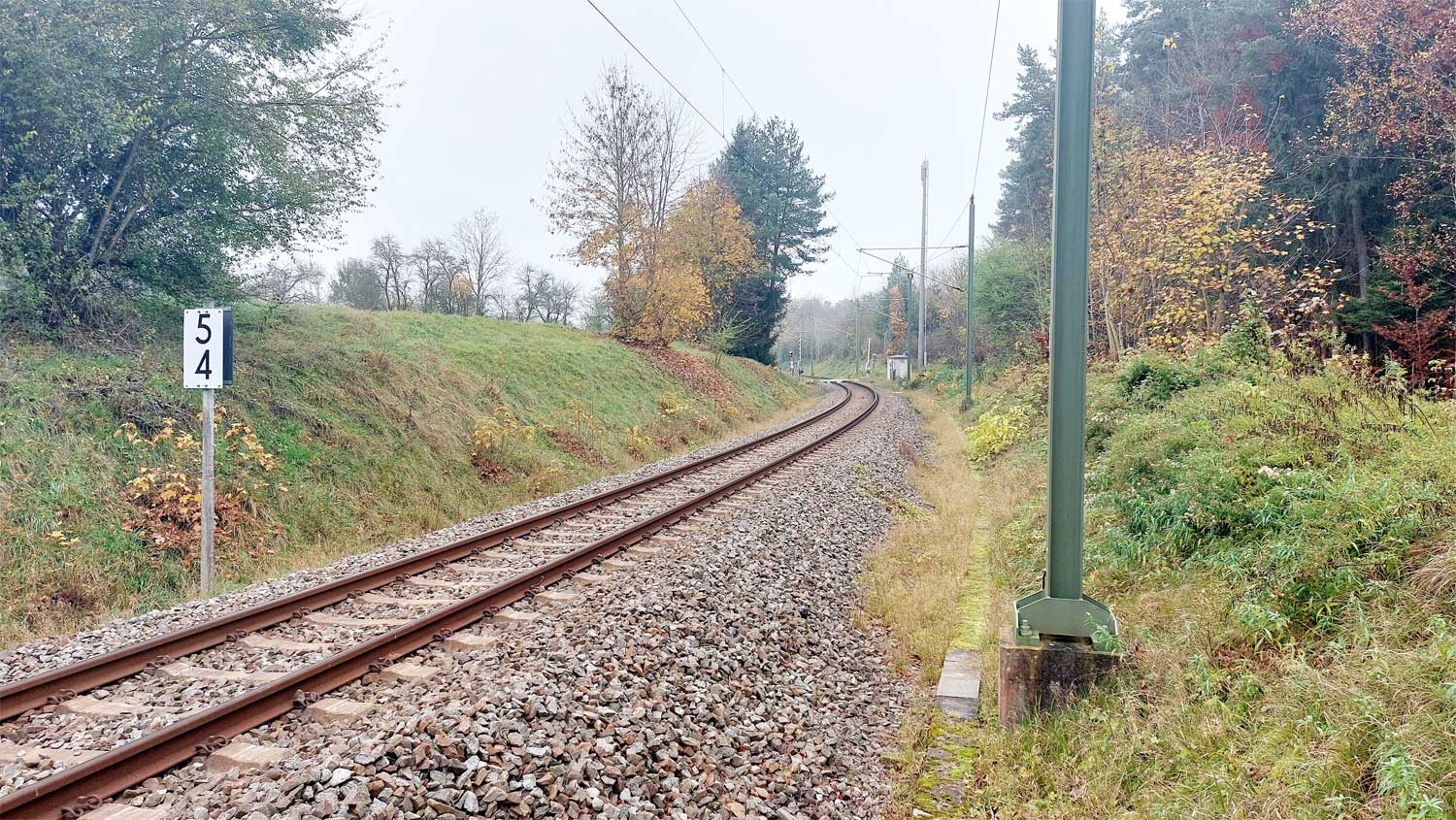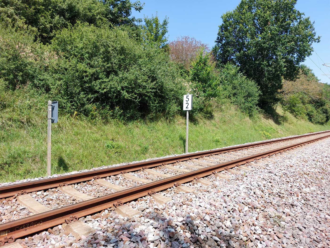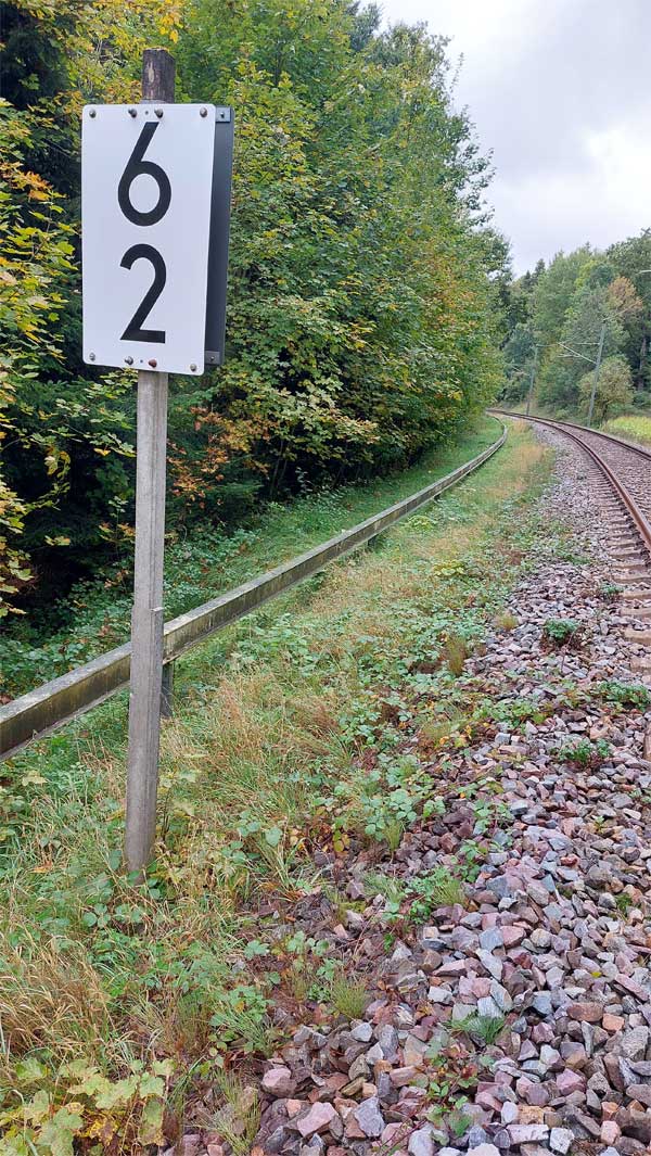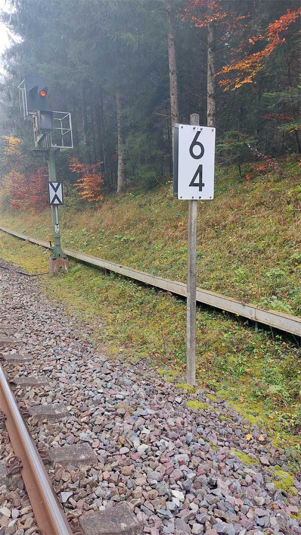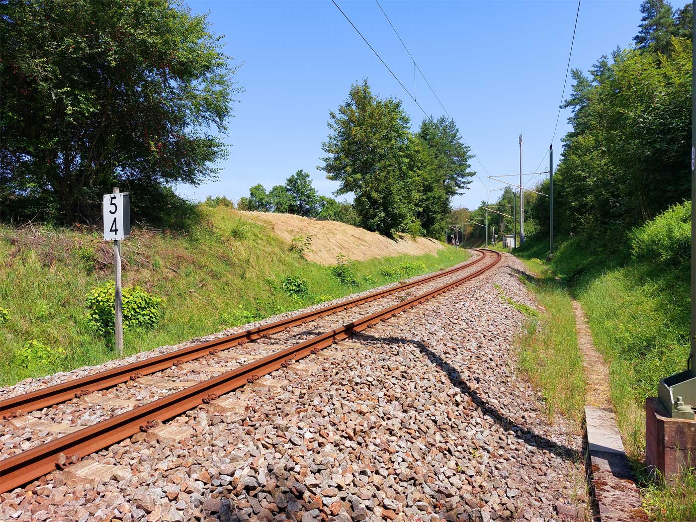 Links ist km 54,2 zu erkennen