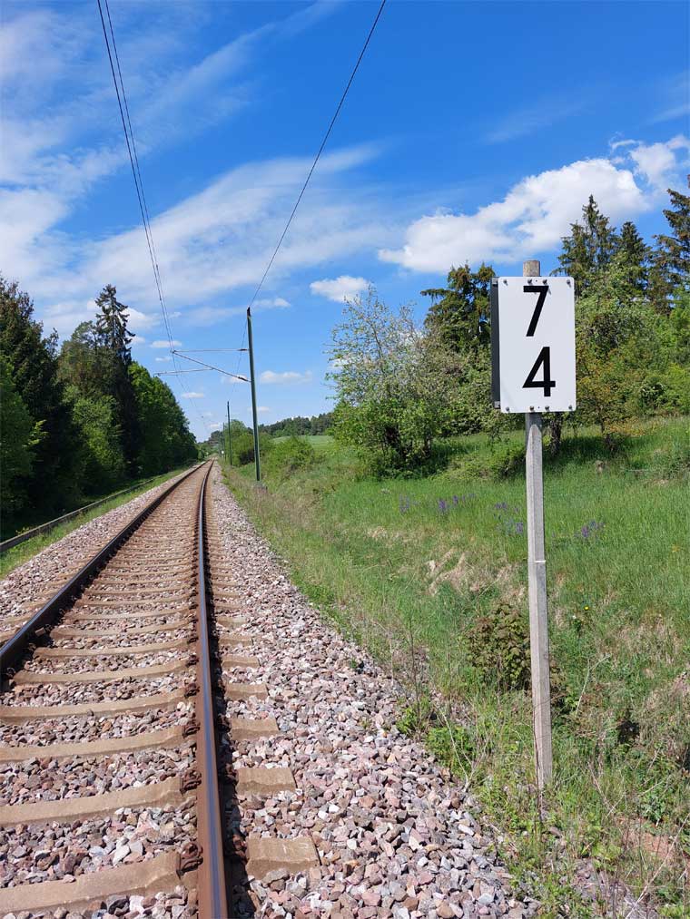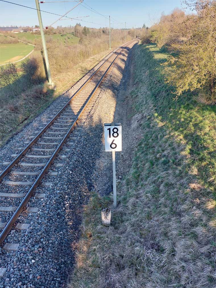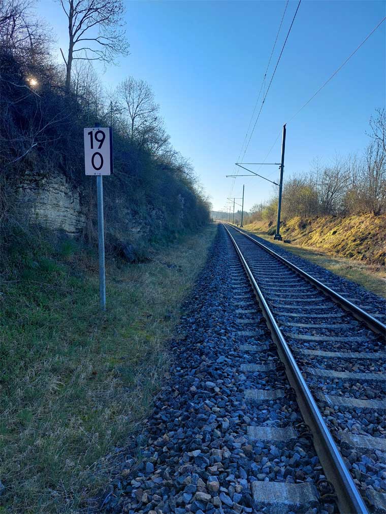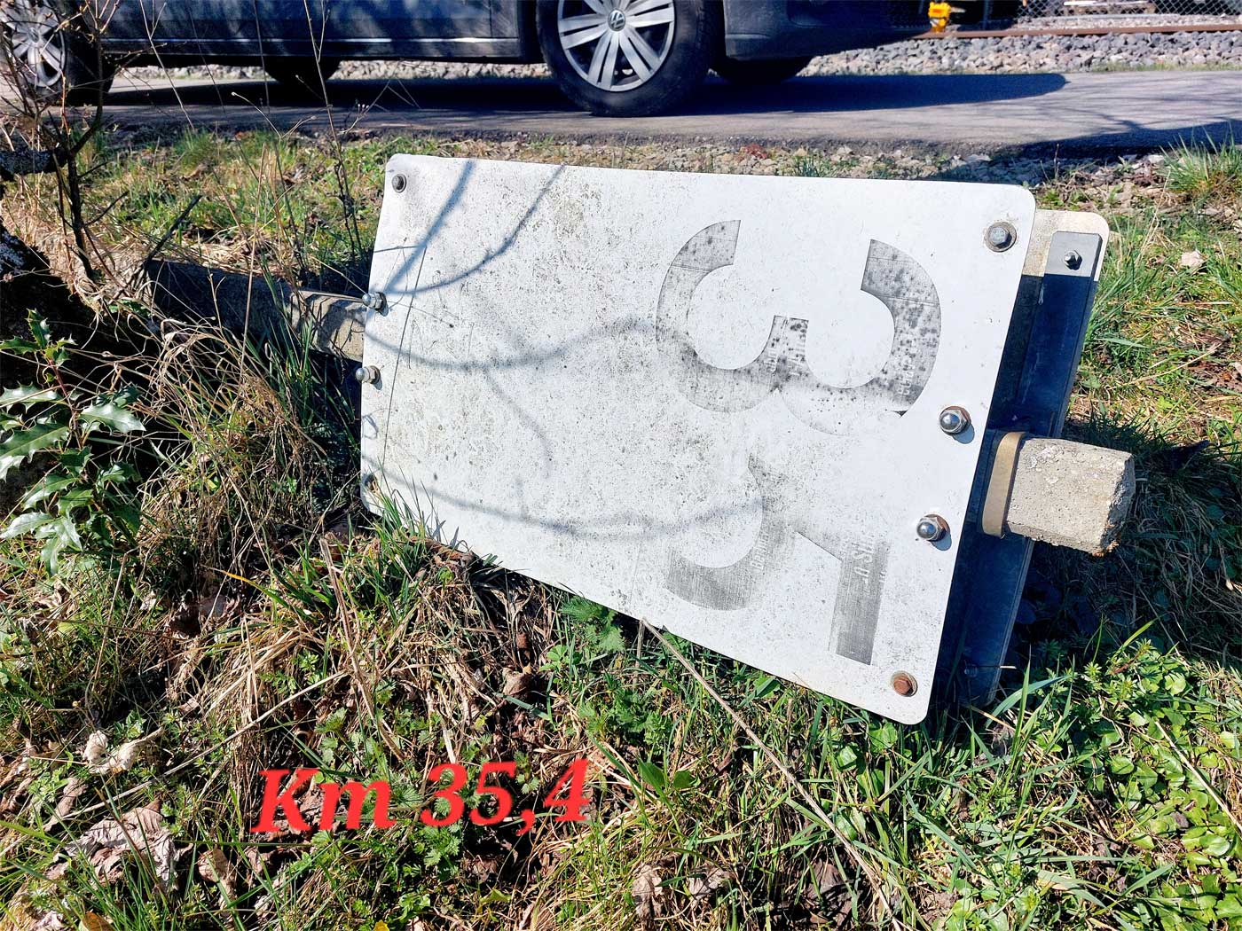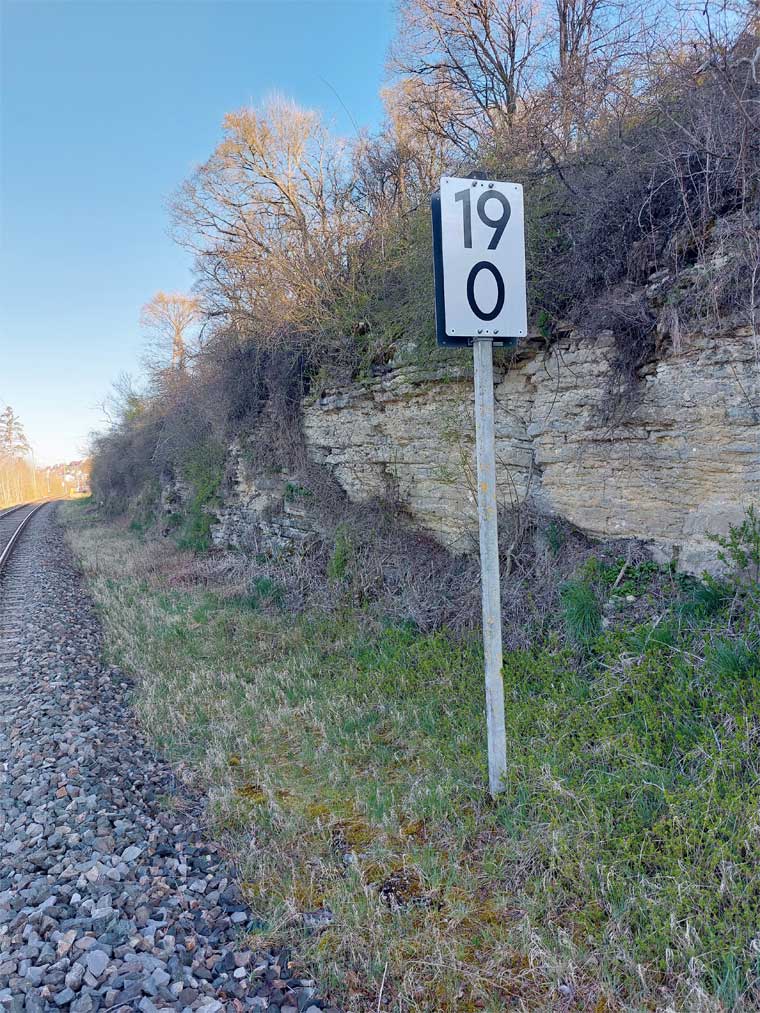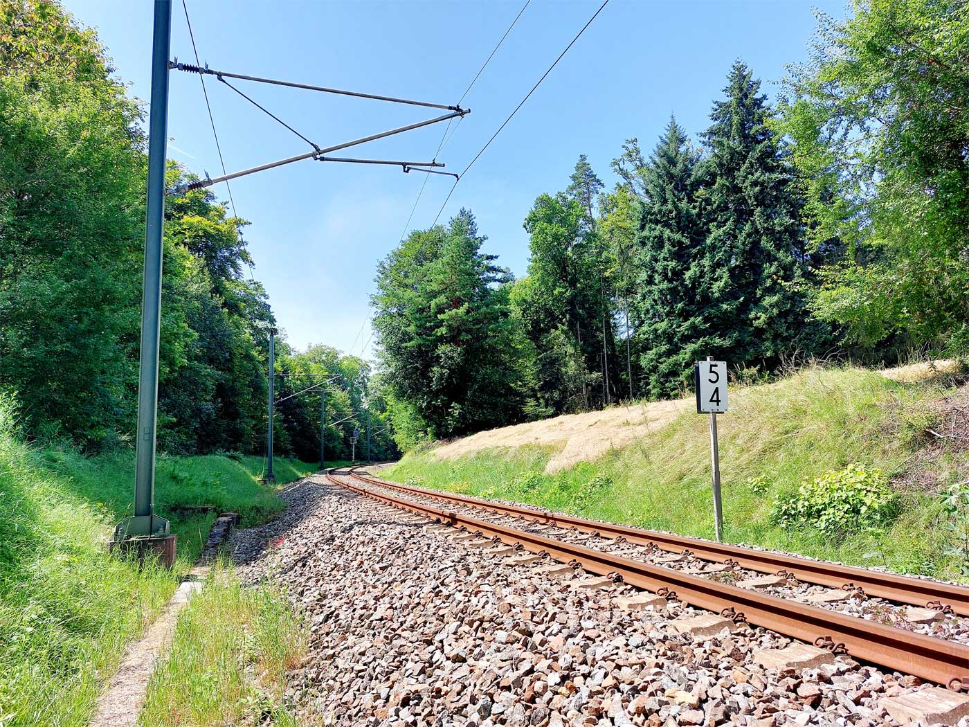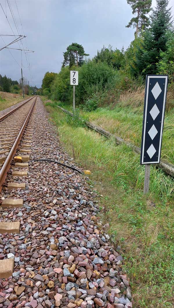 Links ist km 54,2 zu erkennen