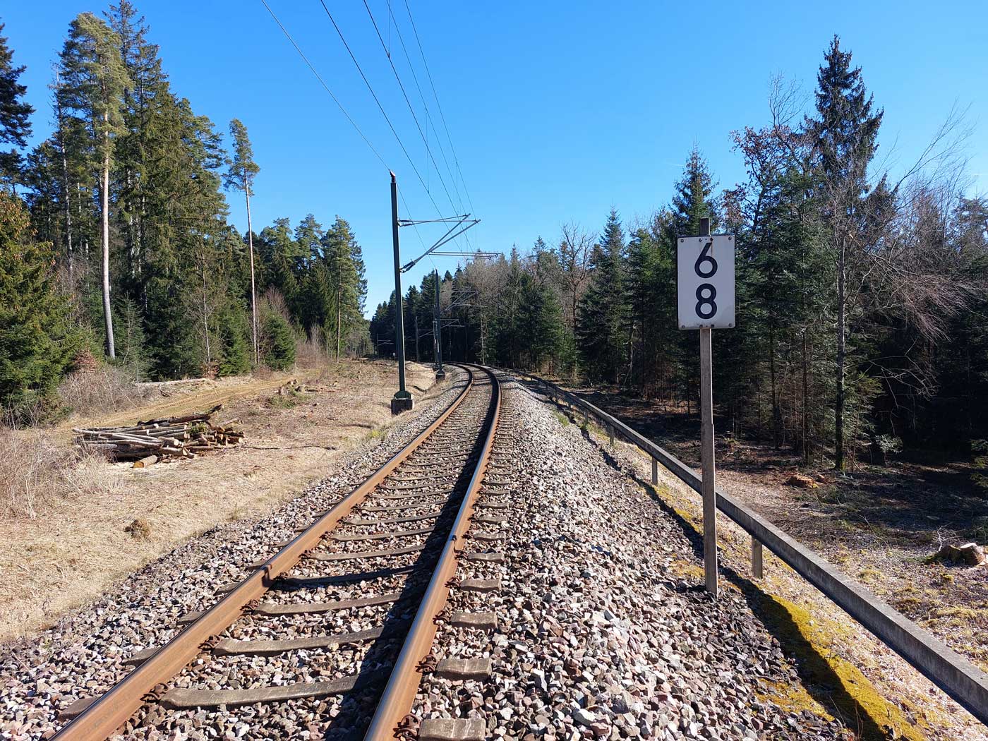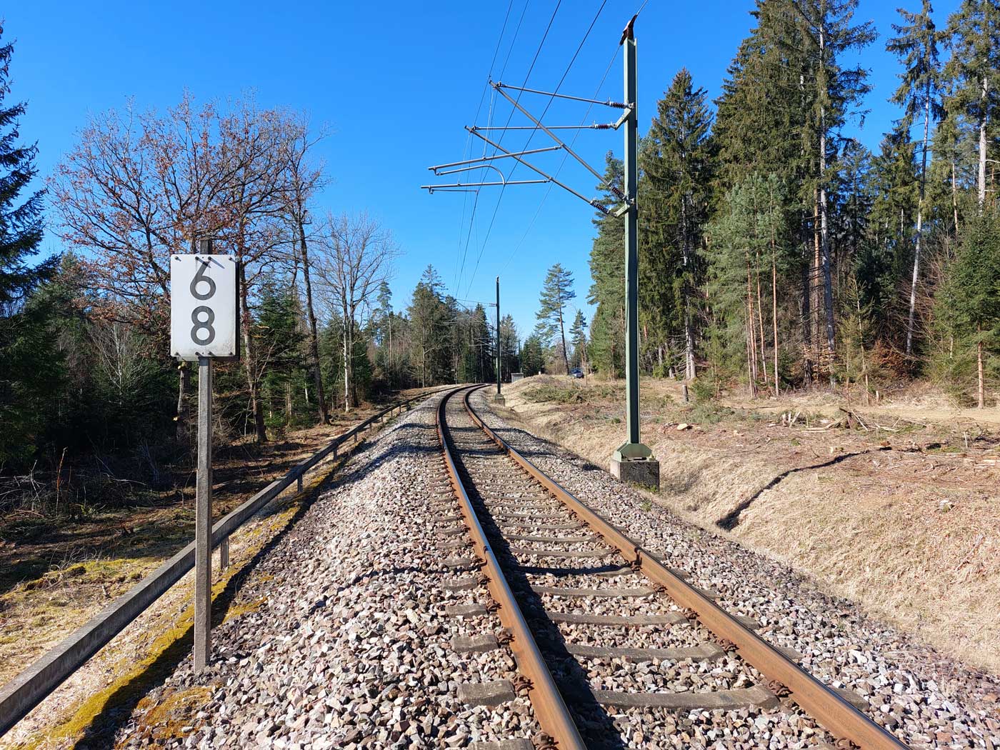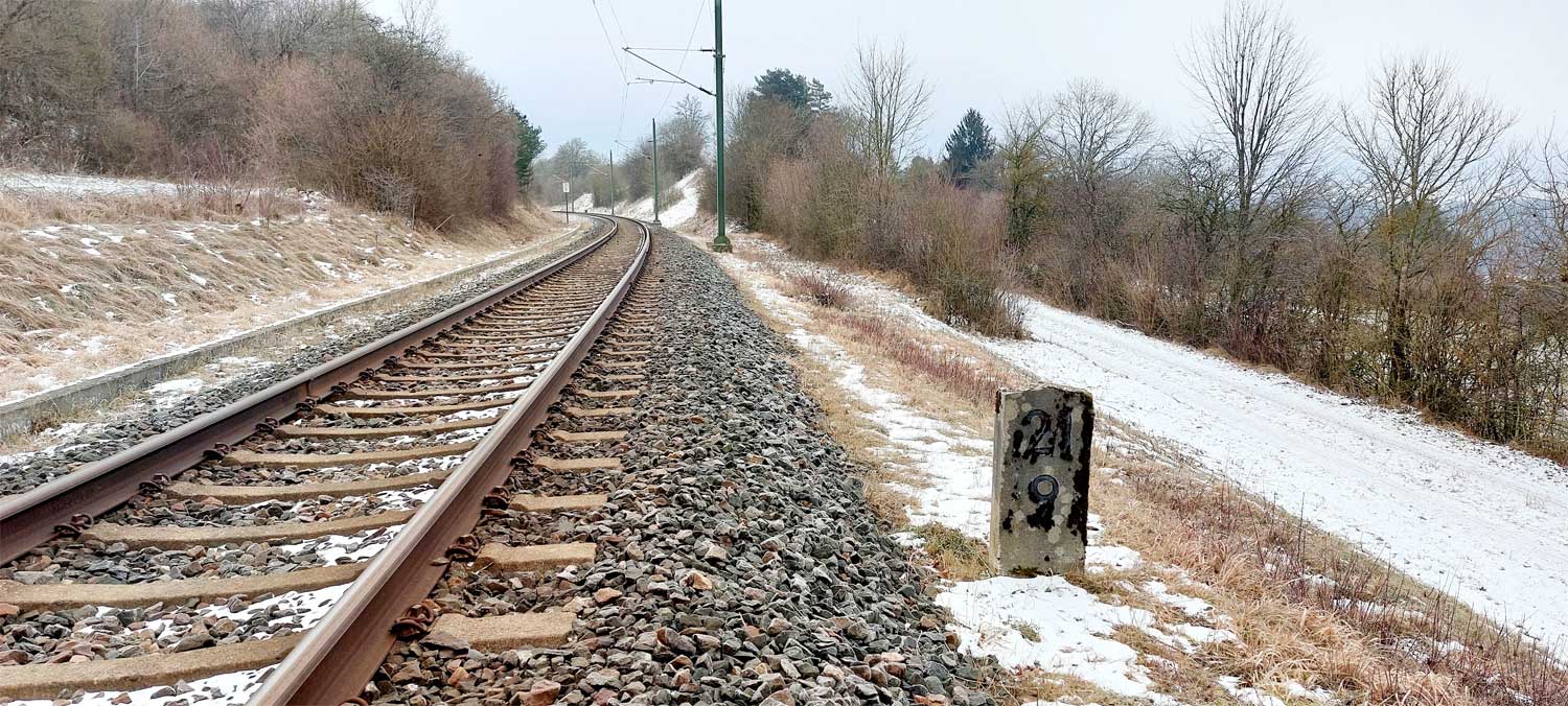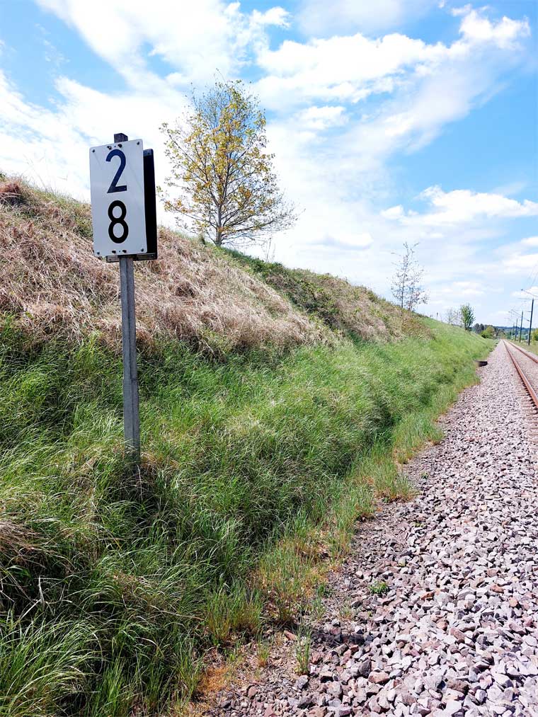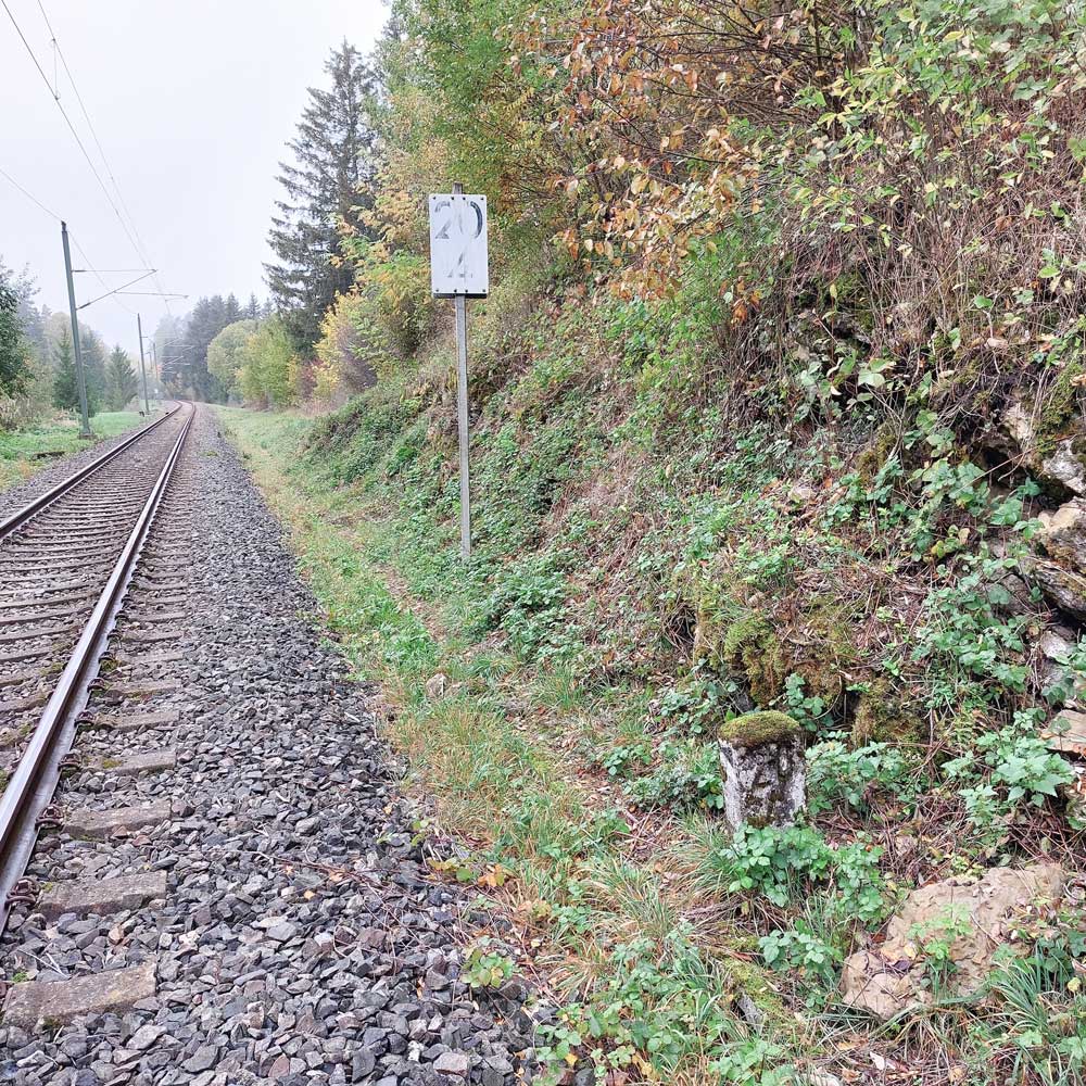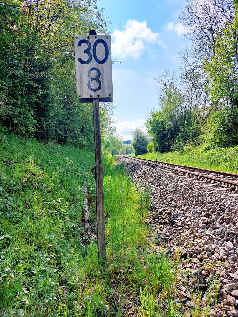 Links ist km 54,2 zu erkennen