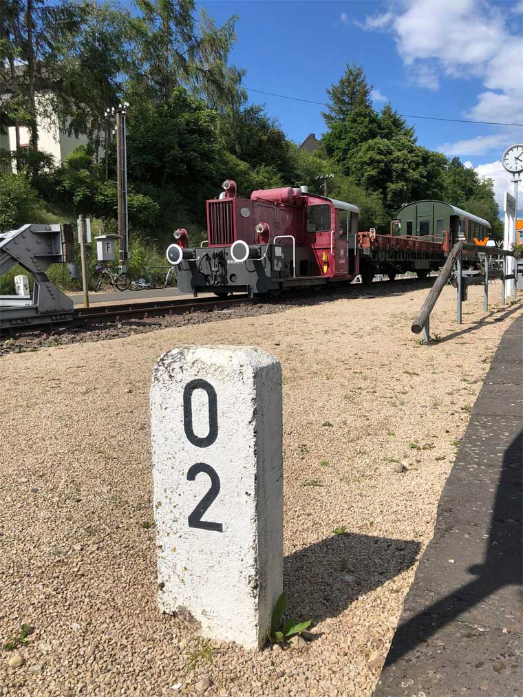 | km 0,0 der Strecke Pronsfeld 0,0 - Waxweiler 8,463 - Streckenende 8,617 | ||