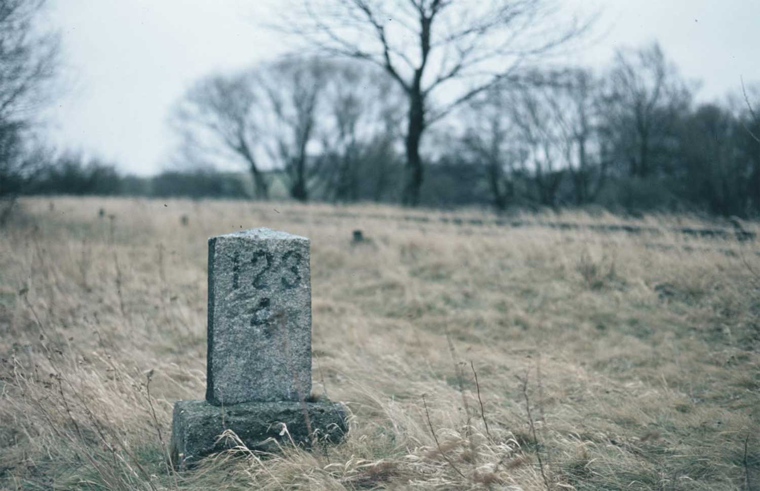 km 103,2 (Tafel) und km 103,3 (Stein) in Heudeber-Danstedt - Blick Richtung Halle (Saale)