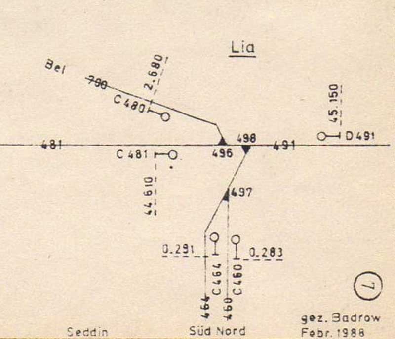 | Abzw. Lia | 44,80 | km 0,0 der Strecke Verbindungskurve Abzw. Lia 0,0 - Seddin 3,12 |