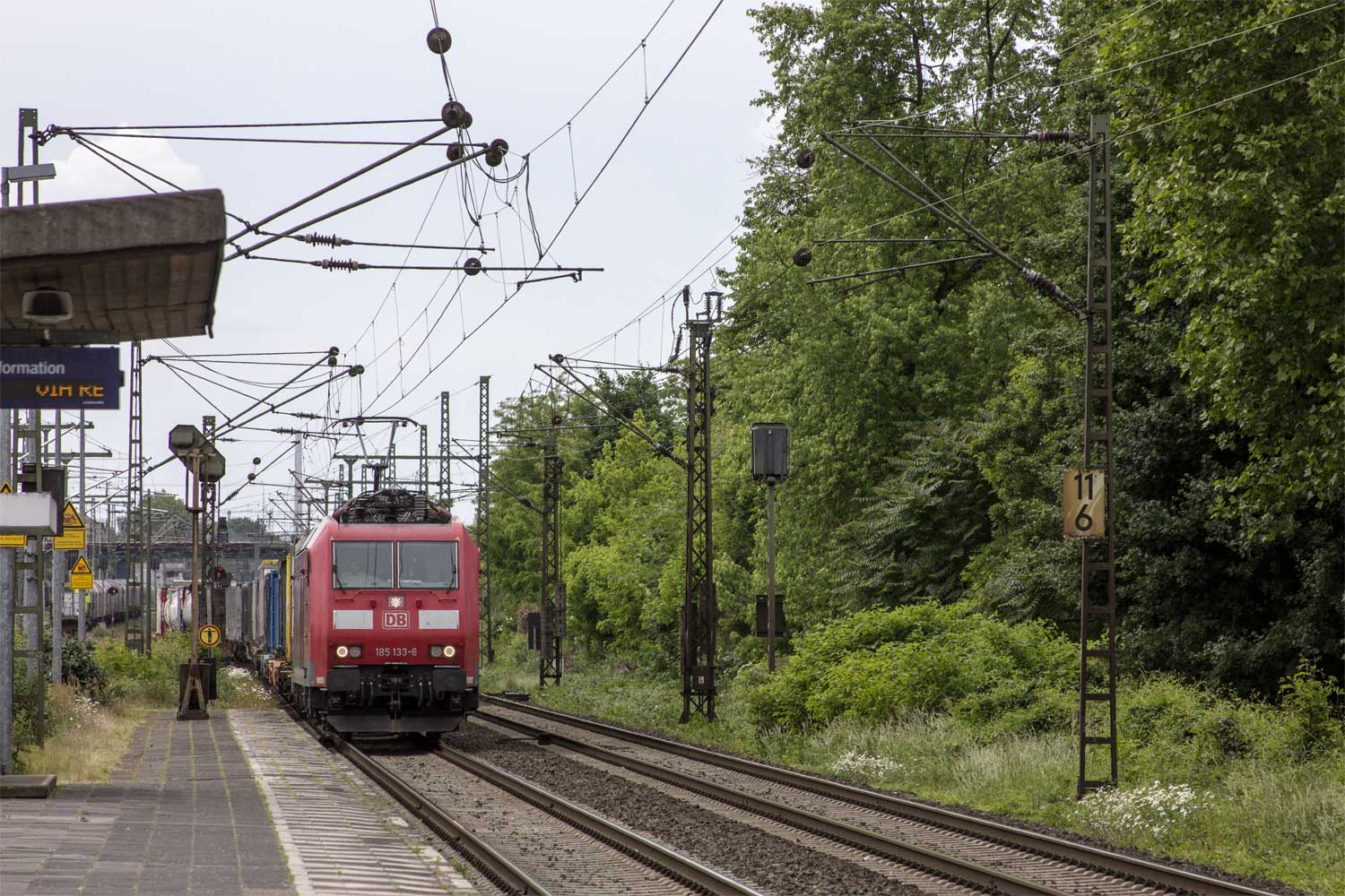 | Rheinhausen | 10,22 | km 0,0 der Strecke Rheinhausen 0,0 - Moers 9,39 - Menzelen West (hoch) 29,37 - Kleve Weiche 4 62,78 - (Kleve 63,69) |