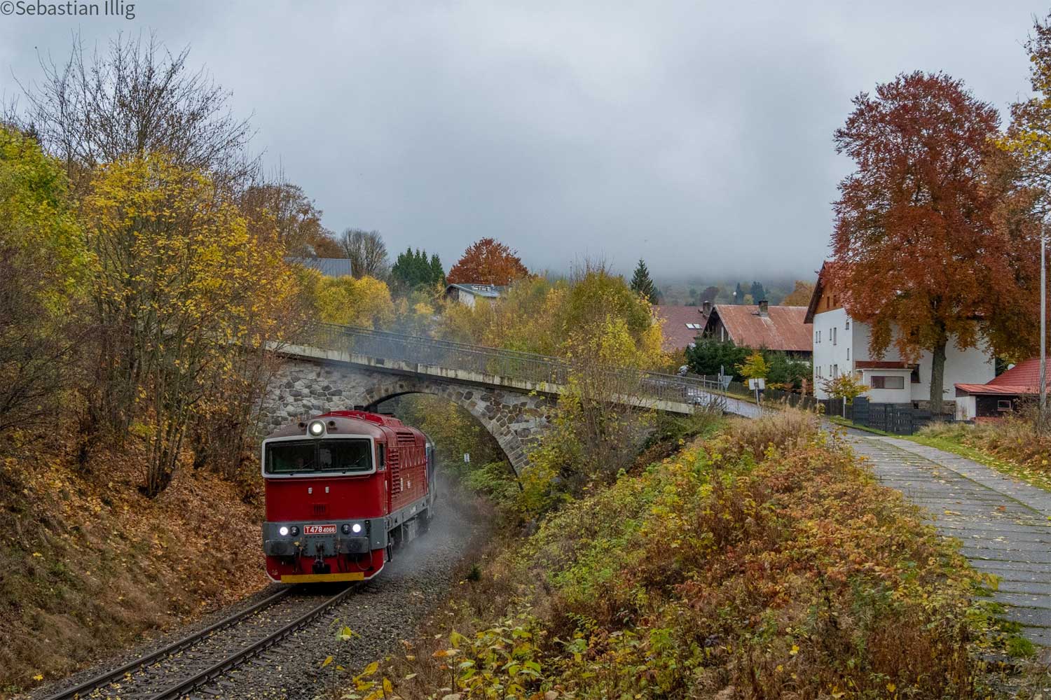 km 3,6 zwischen Železná Ruda centrum und Železná Ruda město (Markt Eisenstein) - Blick Richtung Plzeň hlavní nádraží (Pilsen Hbf)