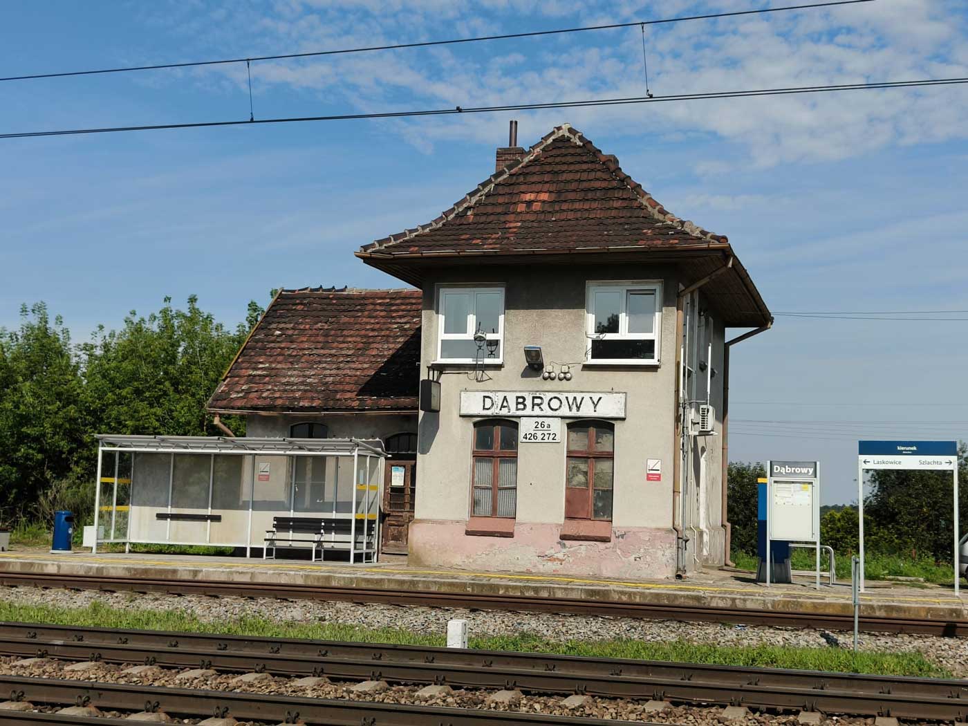 km 3,7 in Dąbrowy (Preußisch Hagen) Im Vordergrund die beiden Gleise der Strecke [Katowice (Kattowitz Hbf) 0,001 - Chorzów Batory