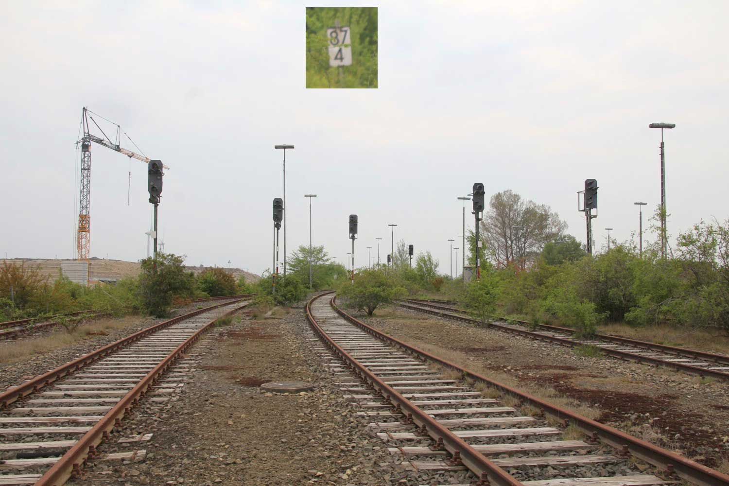 | km -1,63 der Strecke Lübeck Hbf -1,63 - Büchen 47,61 (Die Angabe km -1,63 sollte die Überlänge bei km 4,0/4,2 korrigieren, wurde aber vor Ort wahrscheinlich nie ausgeführt.) | ||