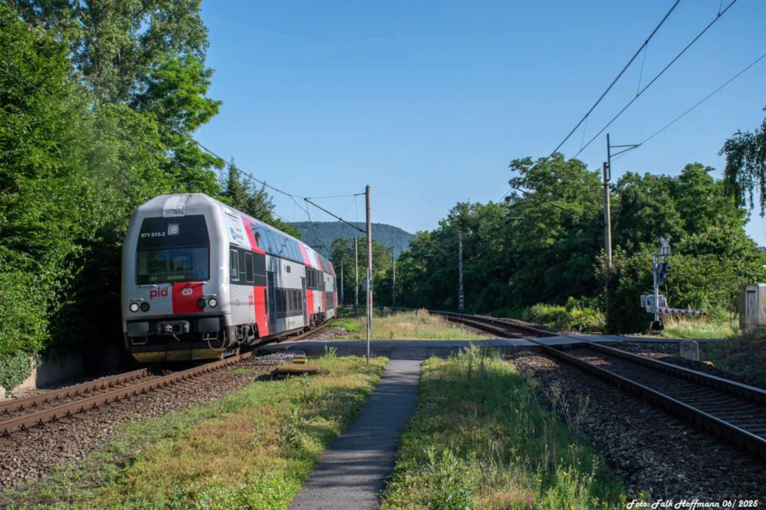 km 15,1 zwischen Černošice (Ober Tschernoschitz / Horní Černošice) und Černošice-Mokropsy (Unter Mokropes / Dolní Mokropsy)