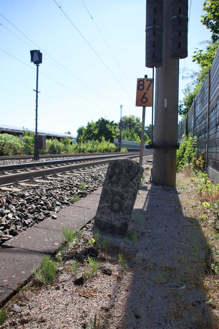 km 87,6 (Stein und Tafel) in Feucht - Blick Richtung Nürnberg