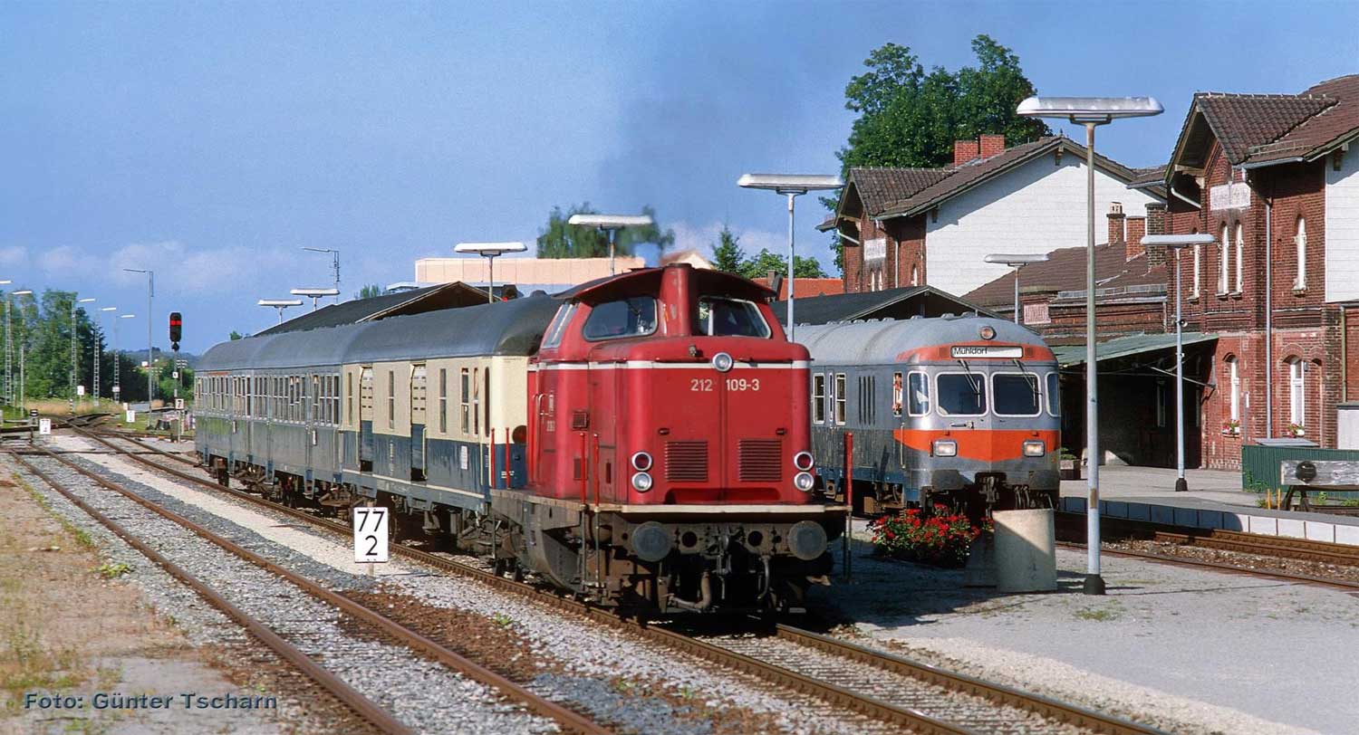 Gute alte Eisenbahnzeit? Mitte der 80er mitnichten noch auf allen Strecken. Die Nebenbahn Rosenheim – Mühldorf - Plisting hatte in dieser Zeit ein ganz besonderes Kuriosum zu bieten. Die Strecke wies sich in „indirekter Proportionalität“ gegenüberstehende Verkehrsströme und Kunstbauten auf. Sprich – los war nix, aber der Streckenunterhalt aufgrund einer großer Innbrücke relativ aufwendig. Als nun die ein Schaden an der Brücke auftrat, wurde die Strecke für Jahre unterbrochen. Soll man es nun als „besonders flexibel“, oder aber als Armutszeugnis bezeichnen, was man bei der DB daraufhin anstellte? Beidseits der Widerlager wurden provisorische Bahnsteige erreichtet, die Brücke mit Holz verkleidet und überdacht, damit es keinem „Anders“ wurde in diesen schwindelnden Höhen, und die Fahrgäste legten die mehreren hundert Meter also zu Fuß zurück. Dort wartete dann wieder der „Anschluss-Zug“. 798 764 steht hier mit ihrem N5371 am Halt „Innbrücke Süd“ und wartet auf „Wandergäste“ von Innbrücke Nord.