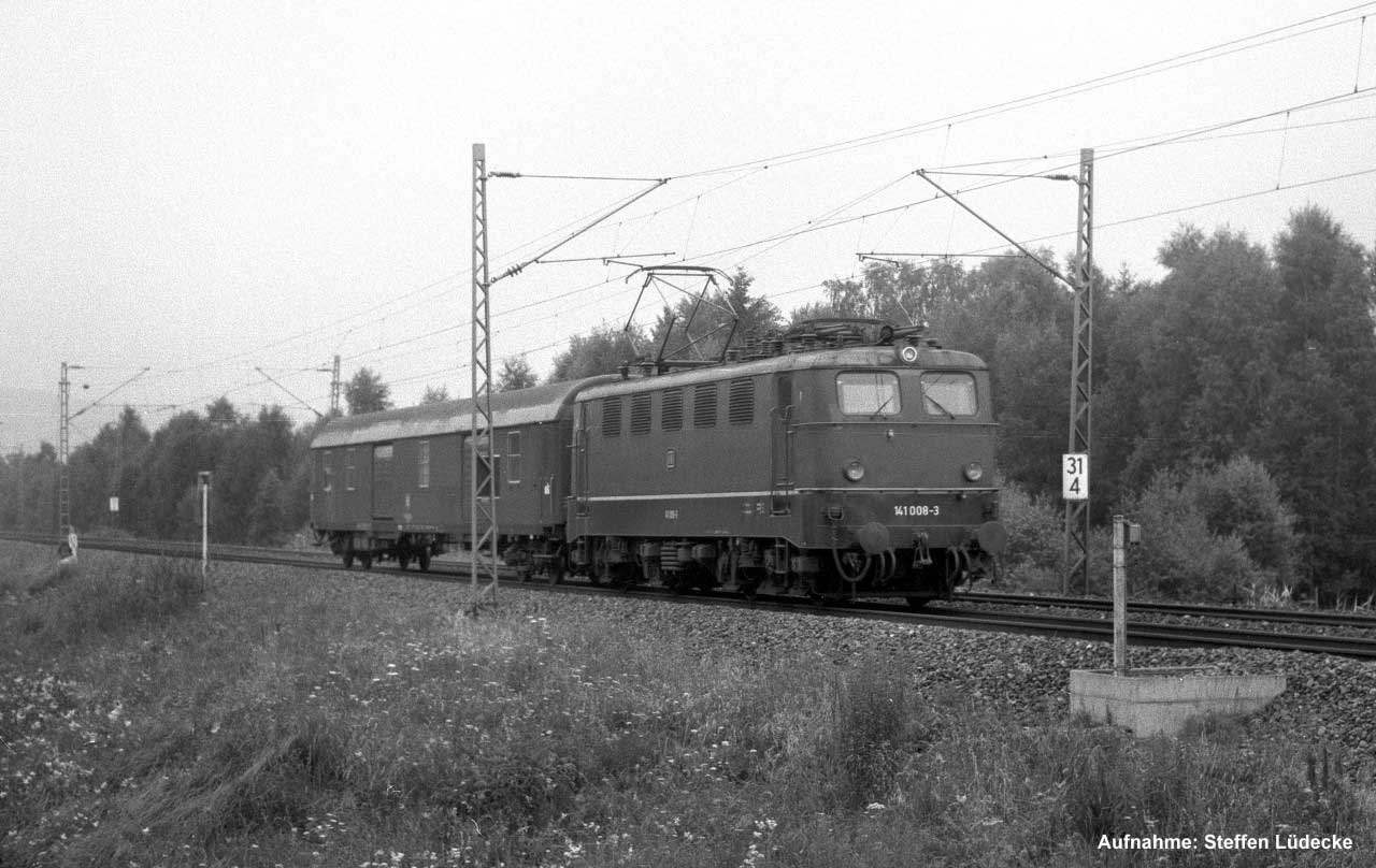 km 80,9 in Freilassing - 194 041 vom Bw Freilassing fährt an ihrem Zuhause vorbei (um 1980)