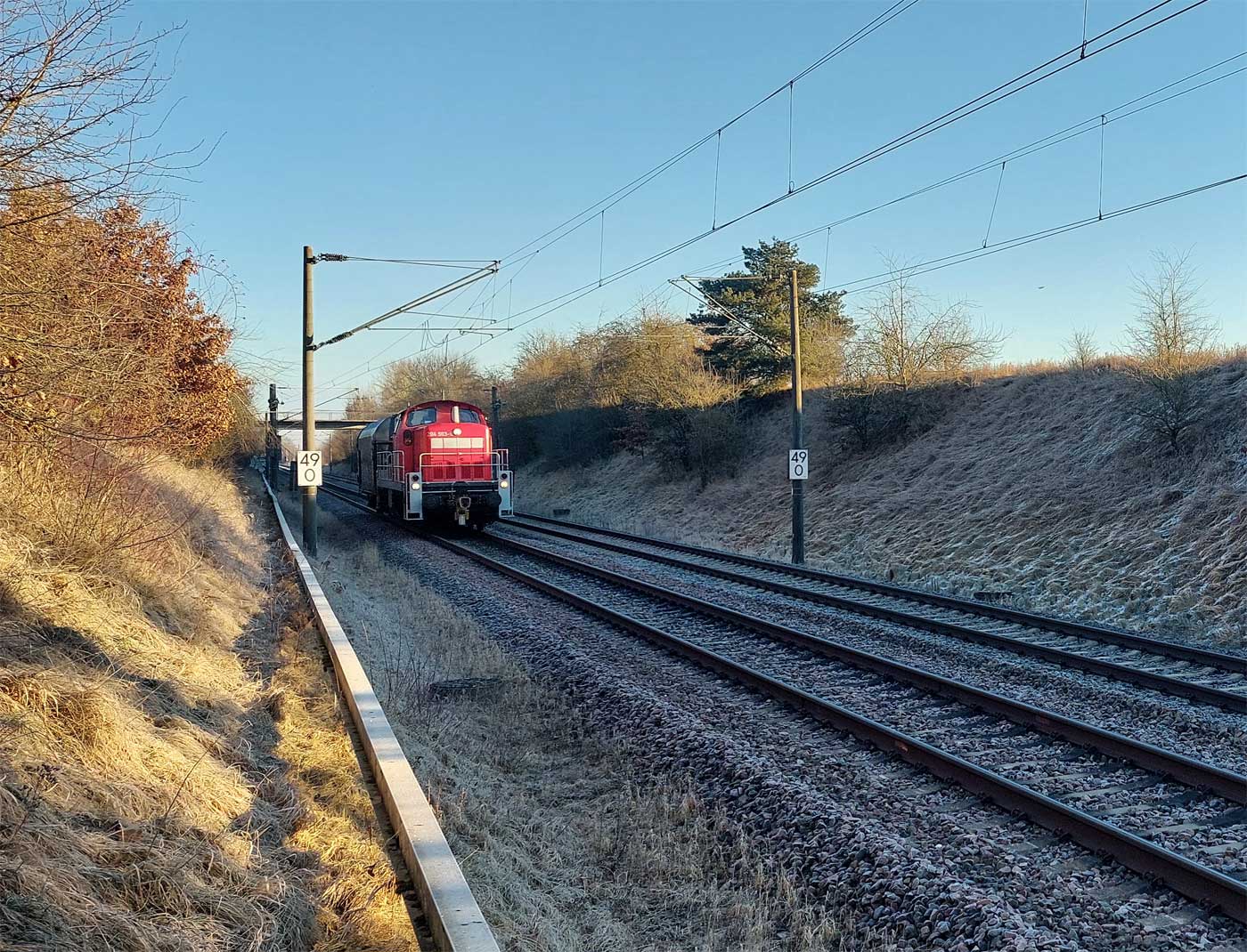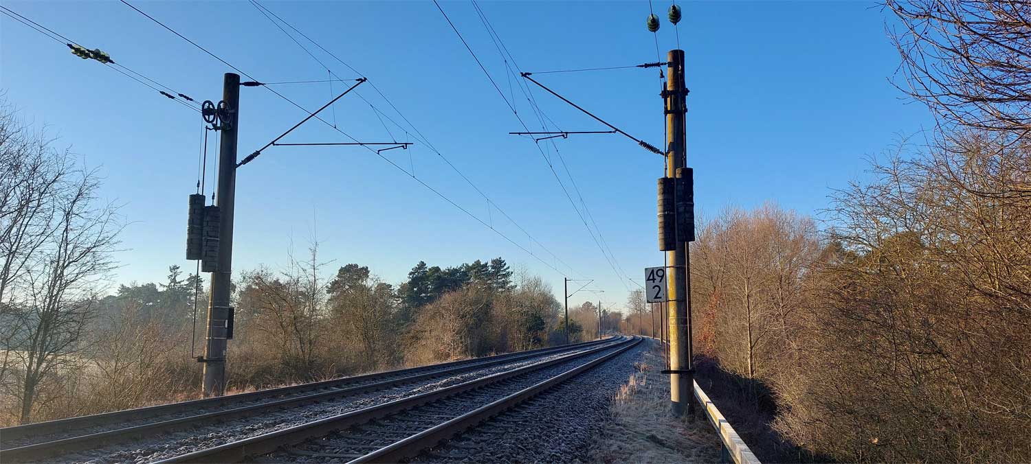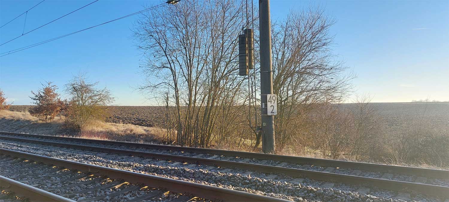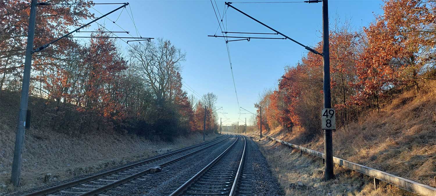 Rechts km 2,4 (Gegenrichtungs- und Richtungsgleis) der Strecke
