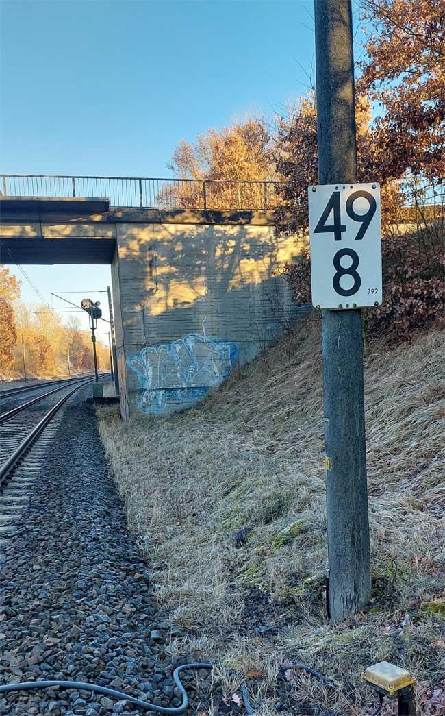 Unten km 1,0 (Gegenrichtungsgleis) der Strecke