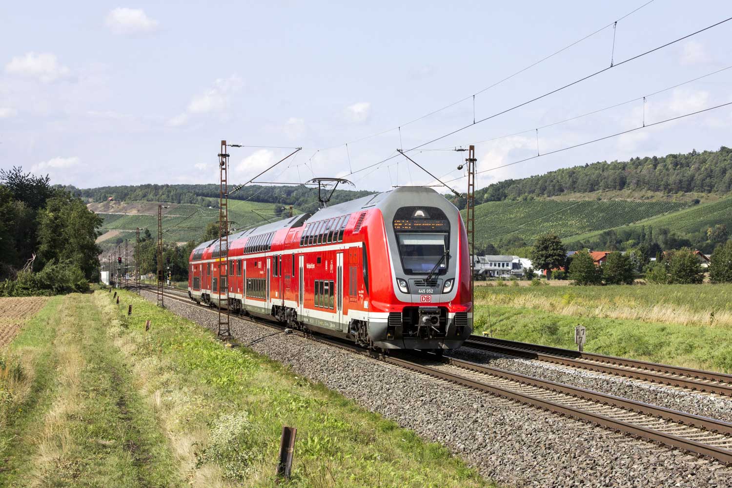 Der Zug befindet sich auf der Strecke Flieden 0,0 - Gemünden (Main) 56,338