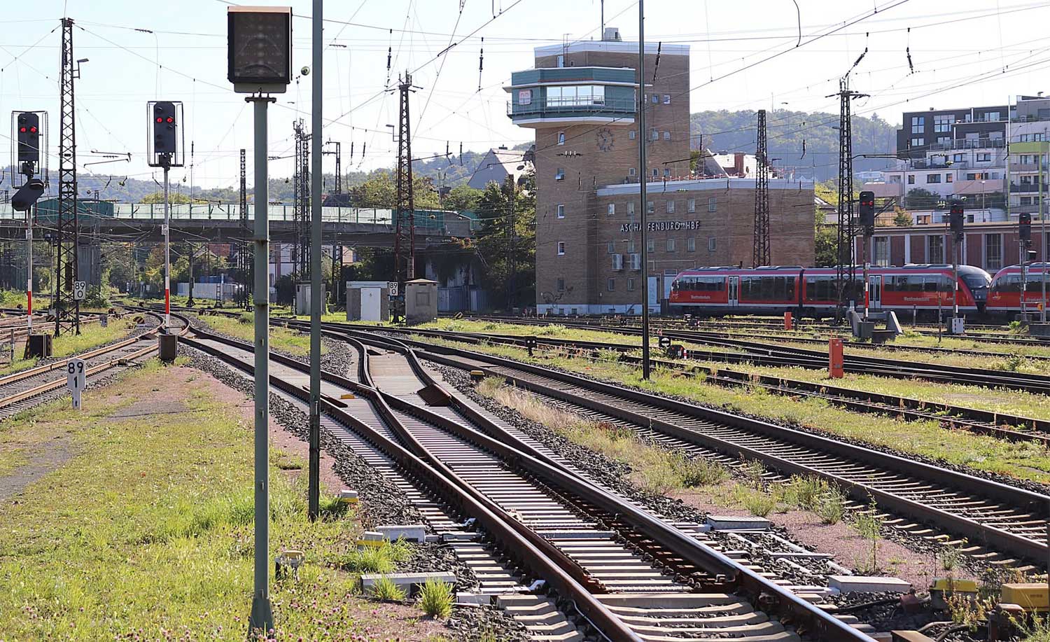 | Aschaffenburg Hbf | 89,31 | km 77,72 der Strecke Mainz Hbf 0,0 - Mainz-Bischofsheim 7,78 - Darmstadt Hbf 33,38 (kommend von Mainz Hbf)/34,54 (kommend von Mainz Hbf Gegengleis)/33,96 (gehend nach Aschaffenburg) - Aschaffenburg Hbf 77,72 |