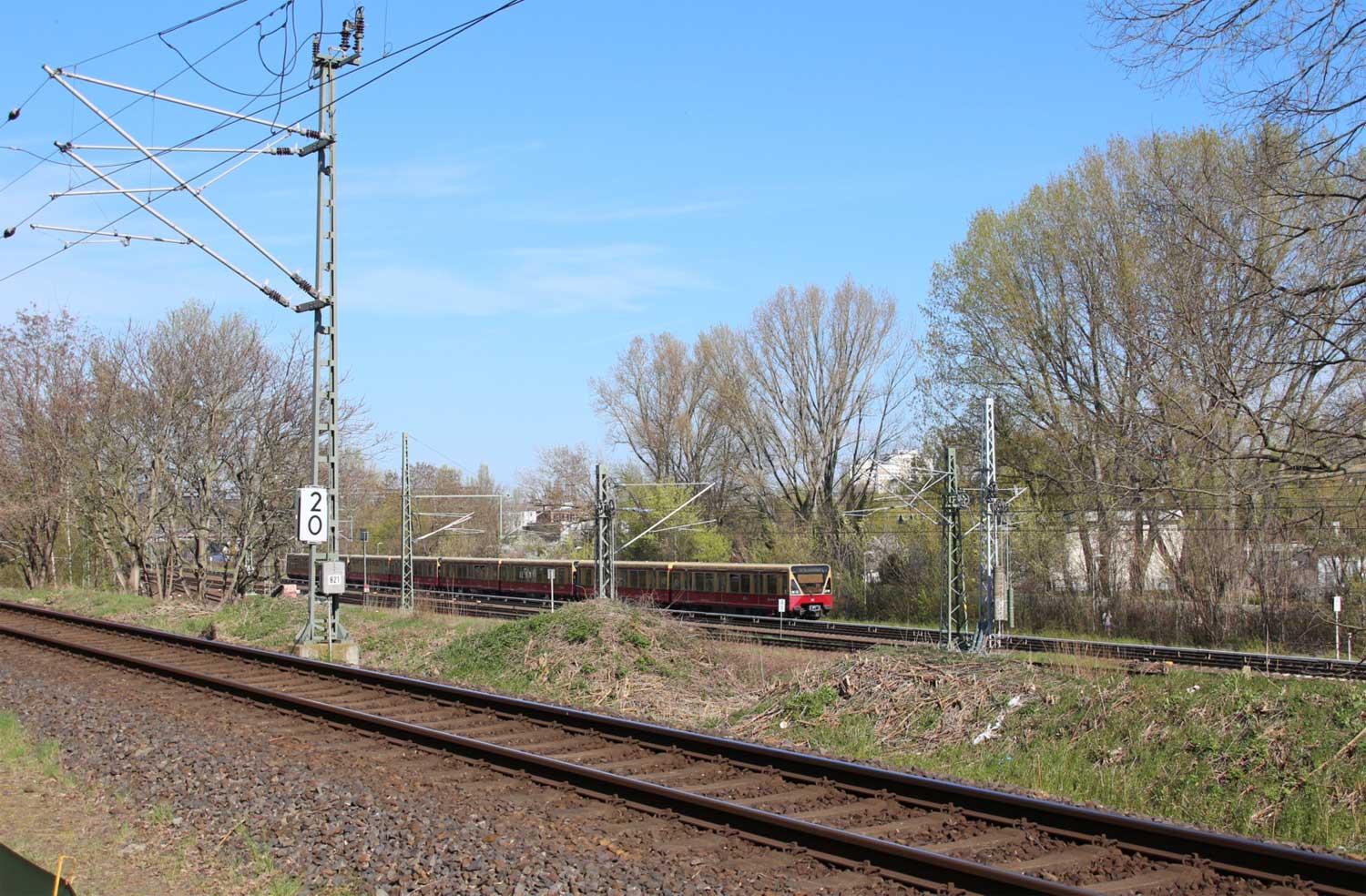 dahinter höher liegend das Gleis der Strecke (Berlin Ostbahnhof 0,10) - Abzw Vnk Berlin-Rummelsburg 3,84 - Abzw Biesdorfer Kreuz Nord 10,83 (6070).