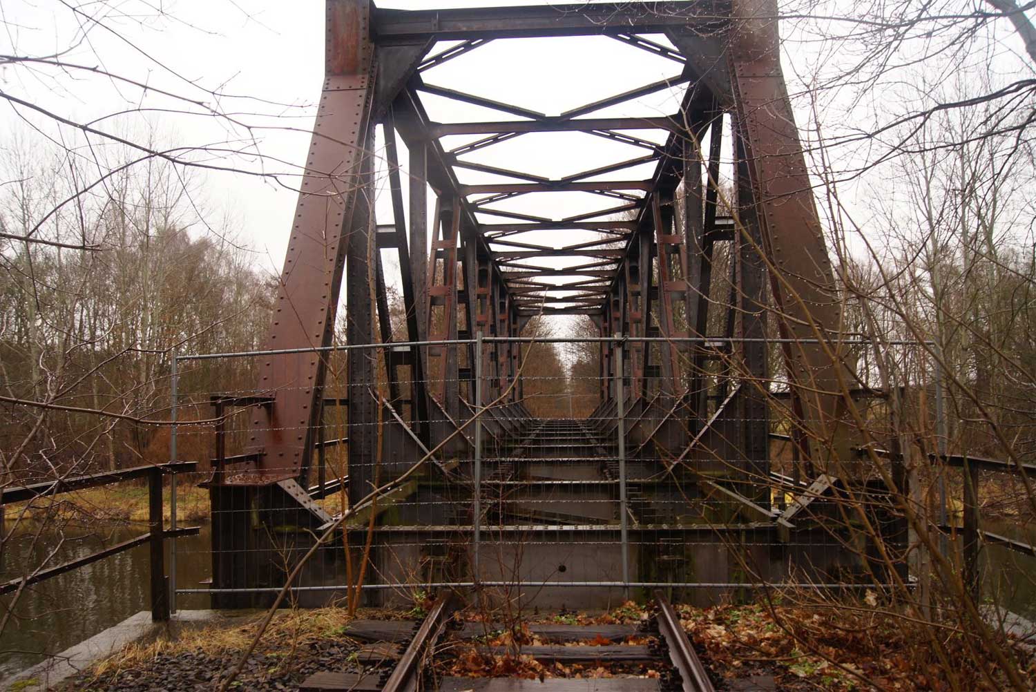 Brücke über den Oder-Havel-Kanal, die Brücke wurde nach der Stilllegung angehoben.