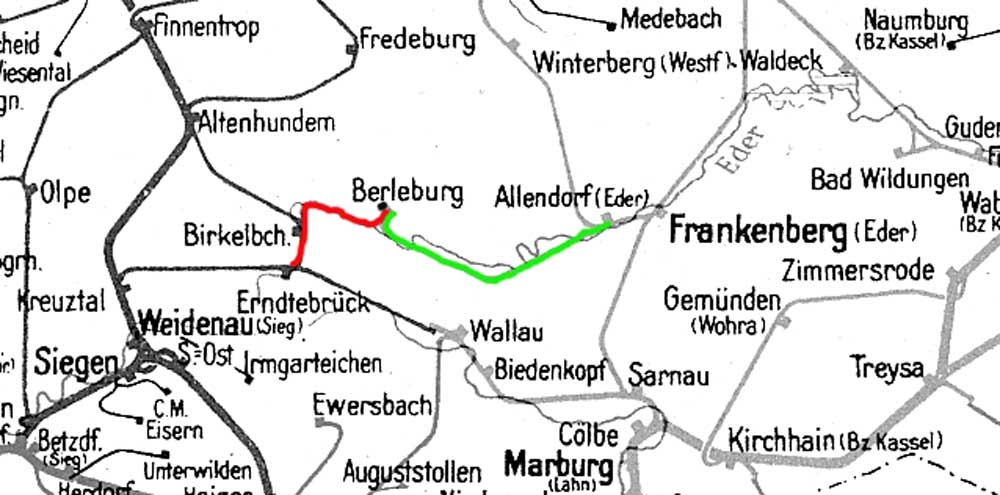 | Abzw Hörre | 17,39 | km 2,31 der Strecke Berleburg 0,0 - Allendorf (Eder) 36,15 |