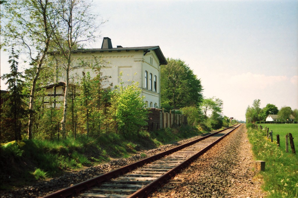 Im Hintergrund bei den Bäumen zweigt die Strecke nach Lindholm ab.