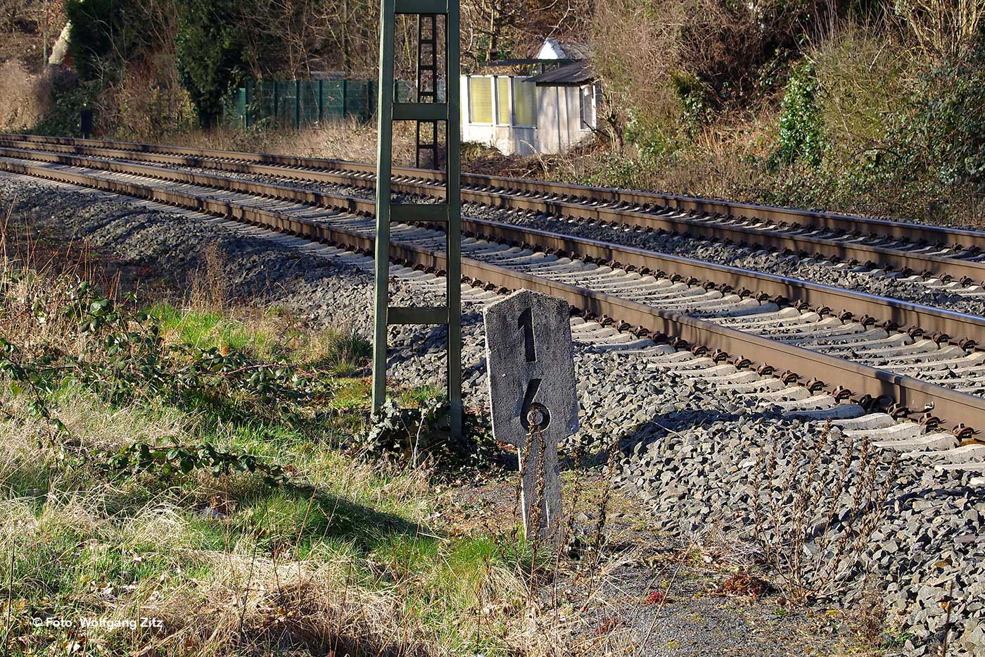 Im Hintergrund die Gleise der Strecke