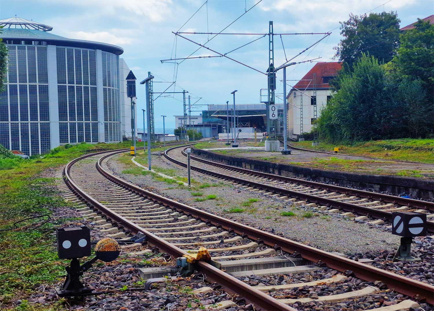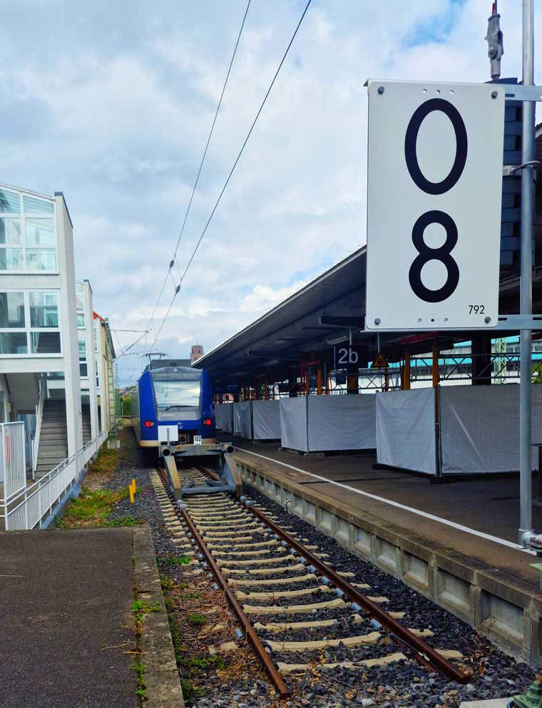 | km 0,0 der Strecke Friedrichshafen Stadt 0,0 - Oberteuringen 10,42 - (Streckenende 10,614) | ||