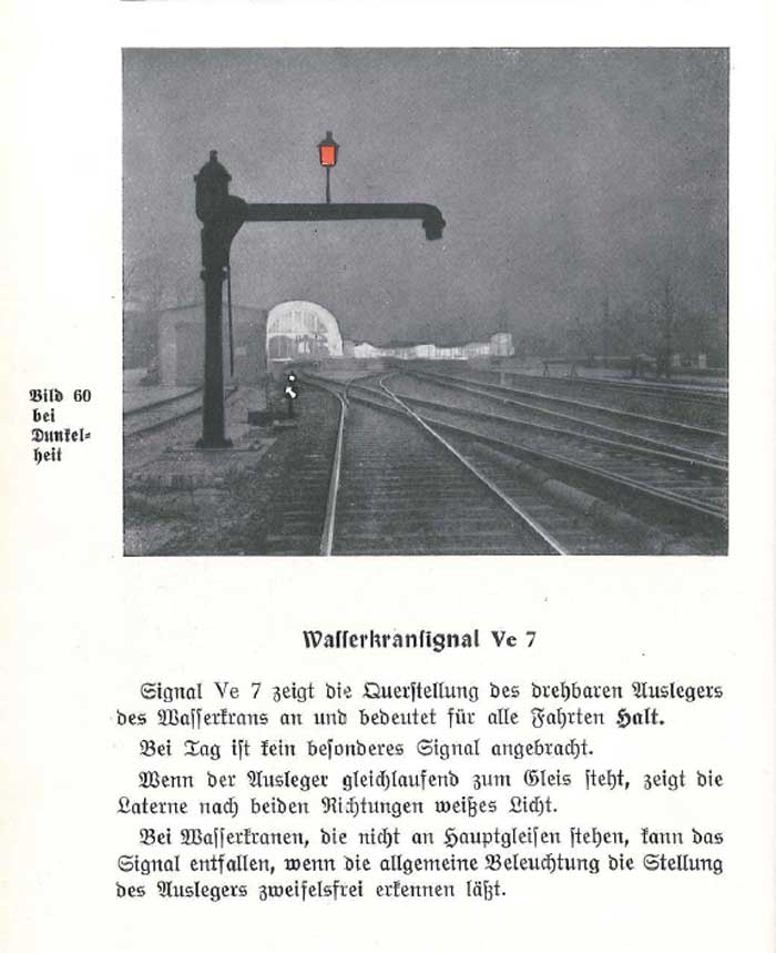 Bei Tag kann sich der Fahrdienstleiter oder Weichenwärter vor Freigabe der Fahrstraße von der profilfreien Stellung des Wasserkranes überzeugen.