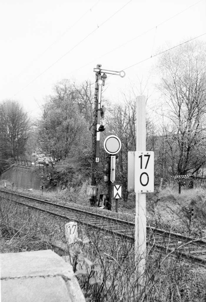 rechts km 7,4 gehört zur Strecke Hamburg-Altona 0,74 - Elmshorn 30,70 - Heide (Holst) 124,48 - Husum 158,26 - Niebüll 198,45 - Westerland (Sylt) 237,61