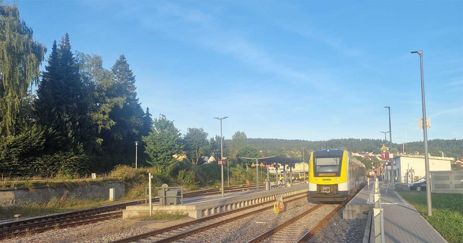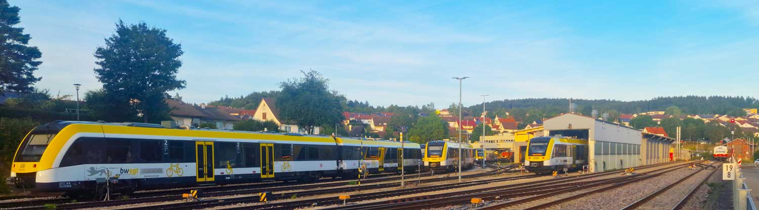 Hinten am VT 6 der HzL hingen VS 220 + VT 410 der WEG (Strohgäubahn), sowie VT 122 + VT 124 der SWEG.