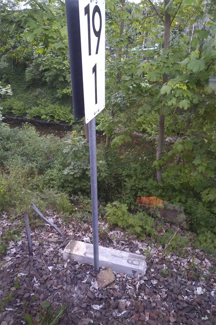 km 5,6 (Stein) und km 5,7 (Tafel) in Weesenstein - Blick Richtung Heidenau