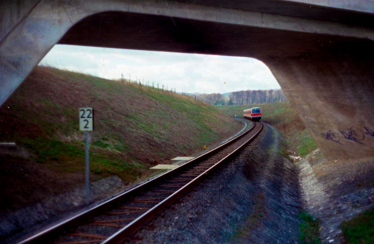Unter der Brücke verlief früher das Gegenrichtungsgleis der Strecke