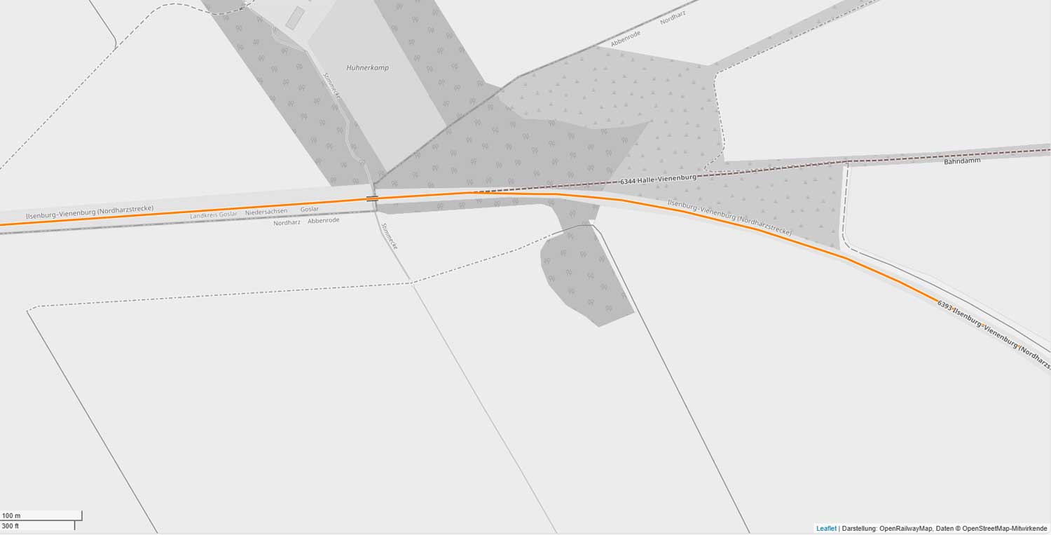 bei km 29,2 zwischen Stapelburg und Vienenburg